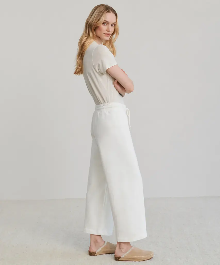 Marina Sweatpant White Elevate every moment at home or on the go with our answer to the perfect everyday sweats. With a more structured feel, this loungewear essential offers up a clean and modern take on classic comfort. 100% cotton. Made in the USA. Wide-leg sweatpant with drawstring waist.