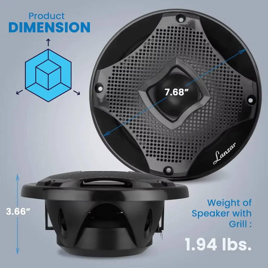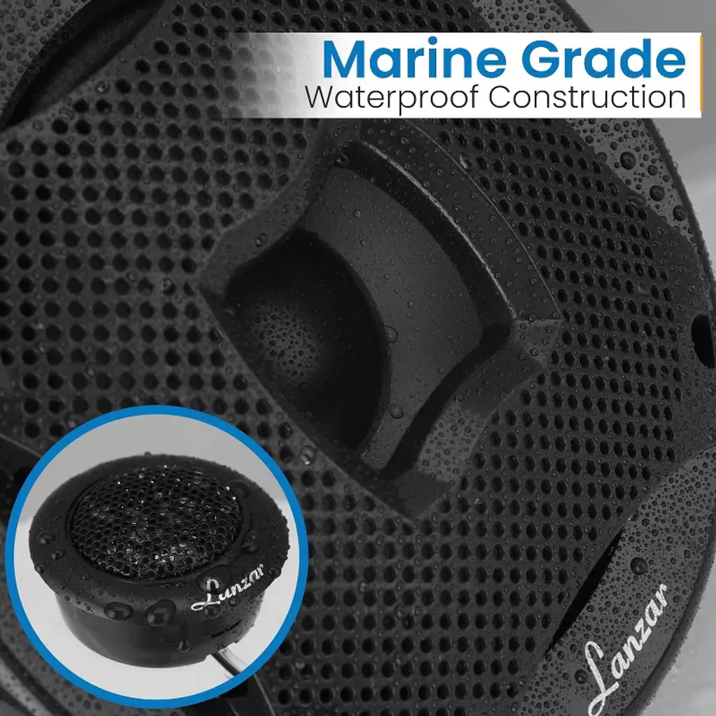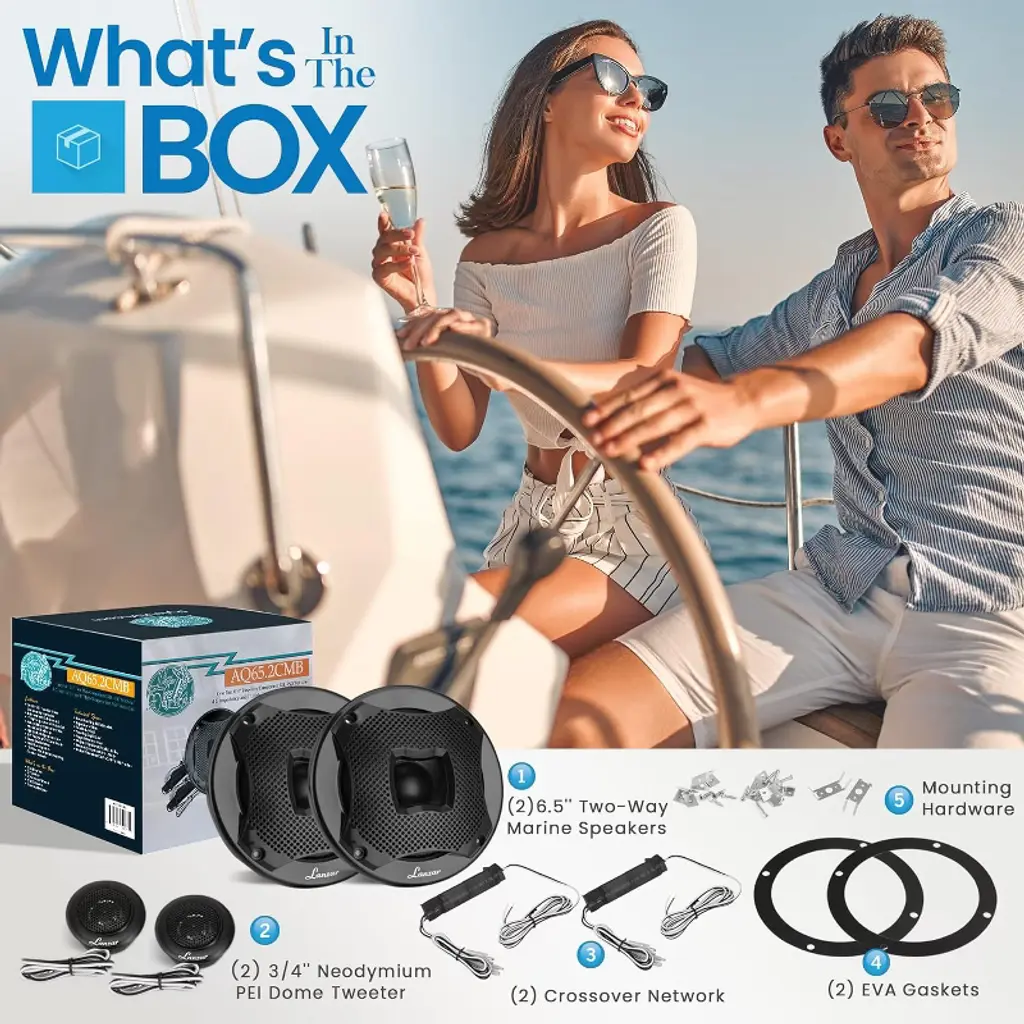 Marine Component Speakers For Boats With Two-way Sound, Waterproof, Black, 2-pack