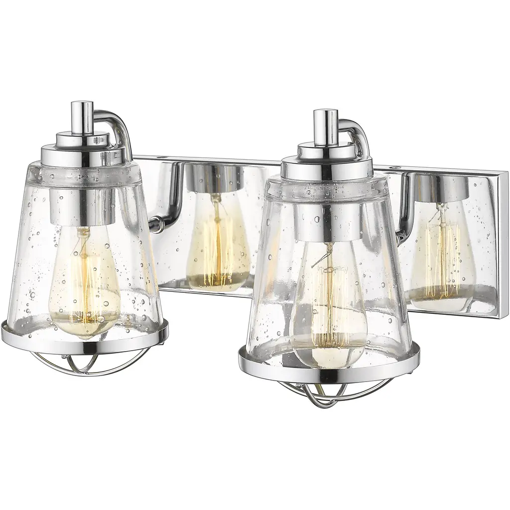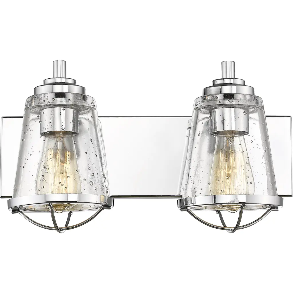Enjoy a charming nautical look and a bright, shiny ambiance in any bath space. This two-light vanity fixture features lovely seedy glass shades and sleek chrome steel as a mount and design trim.