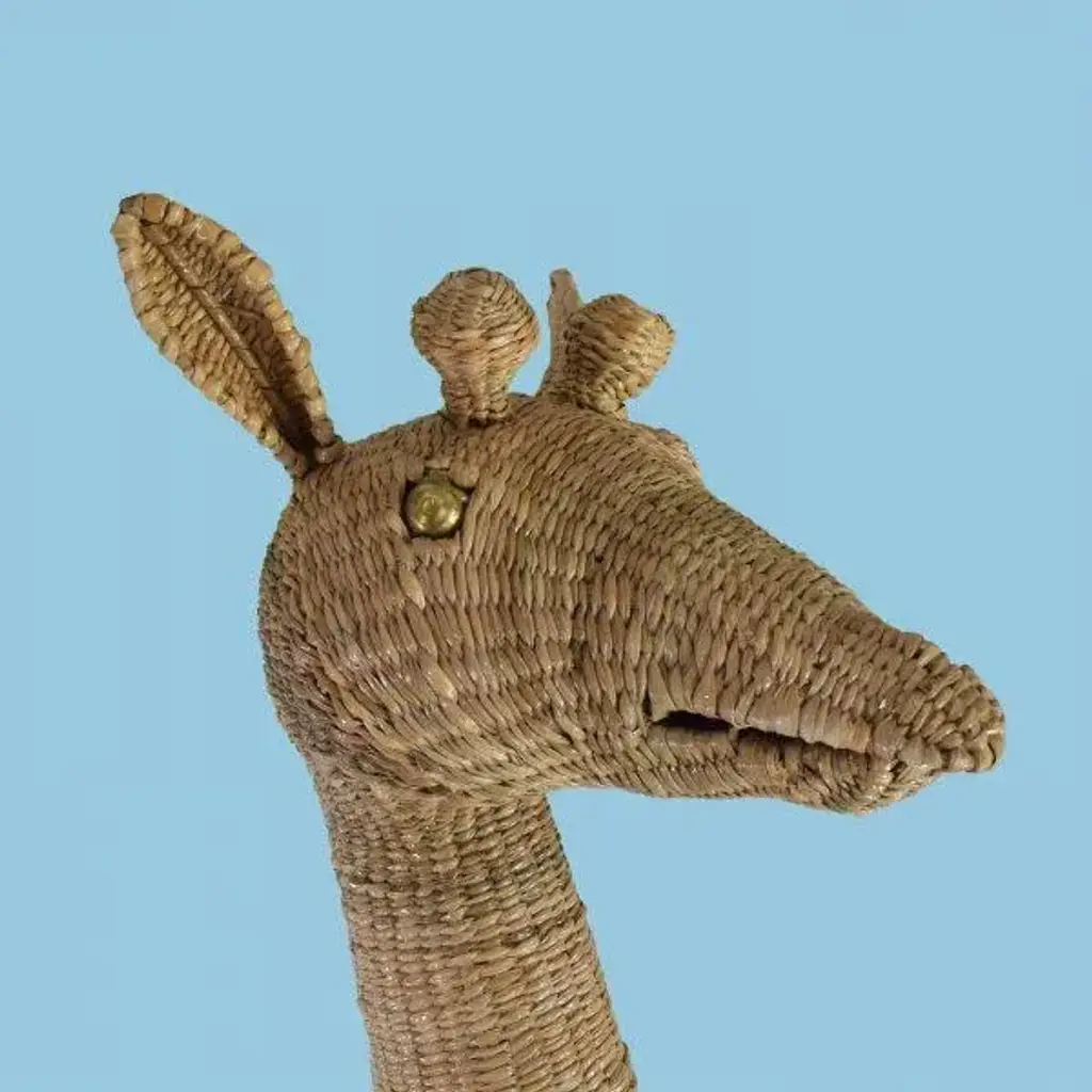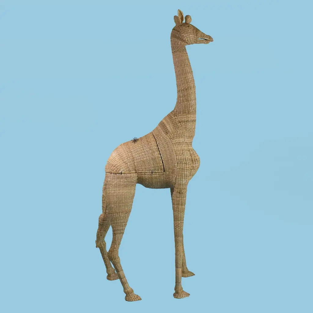 Mario Lopez Torres Giraffe Bar. There are minor imperfections to the hand-made woven rattan. Signed Mario Lopez Torres Est. 1974. Brass accents. Interior has a wine glass holder. (see photos)