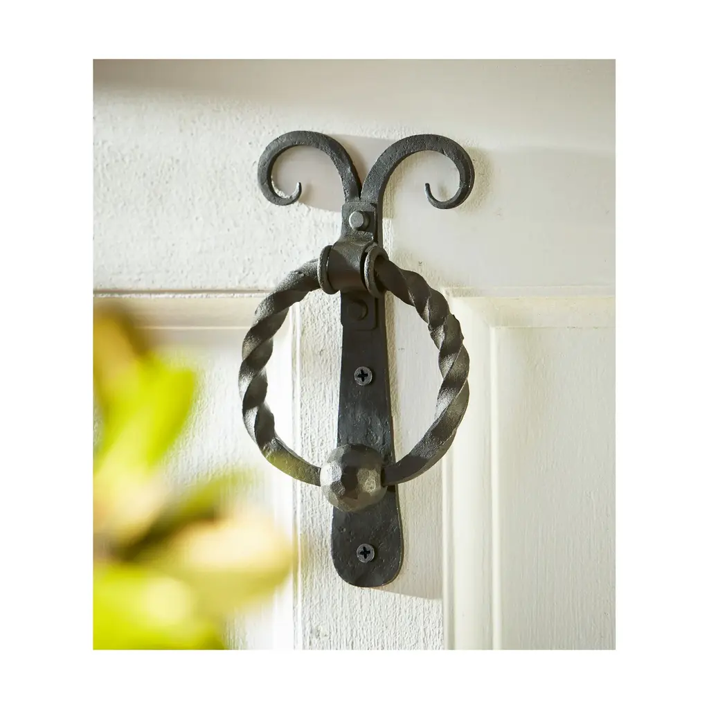 make a bold statement with our hand-forged iron door knocker - perfect for adding both style and function to your home. artisan-made with a unique design, it's the ultimate combination of form & function. if you're feeling creative, flip it over to use as a towel hanger!make a bold statement with our hand-forged iron door knocker - perfect for adding both style and function to your home. artisan-made with a unique design, it's the ultimate combination of form & function. if you're feeling creative, flip it over to use as a towel hanger!QUALITY MATERIAL:ironCARE AND USE INSTRUCTIONS:wipe clean