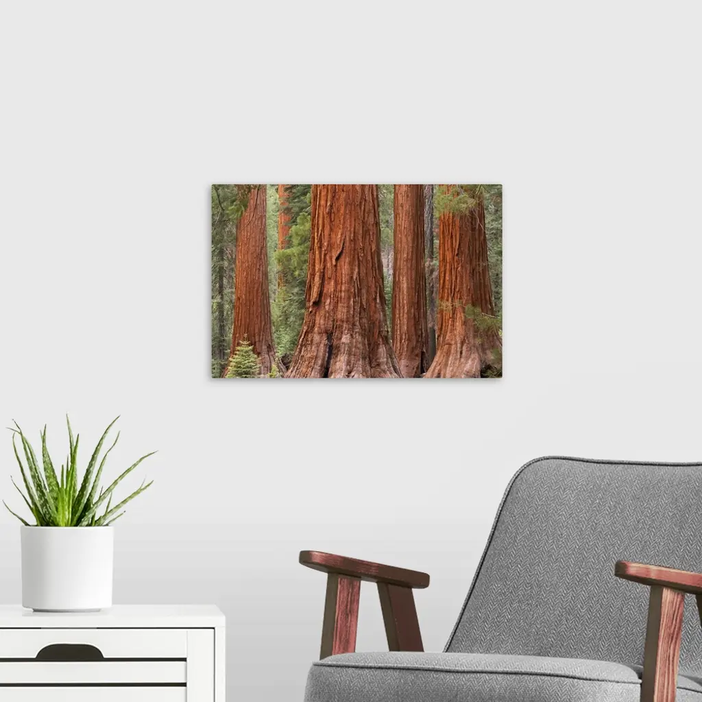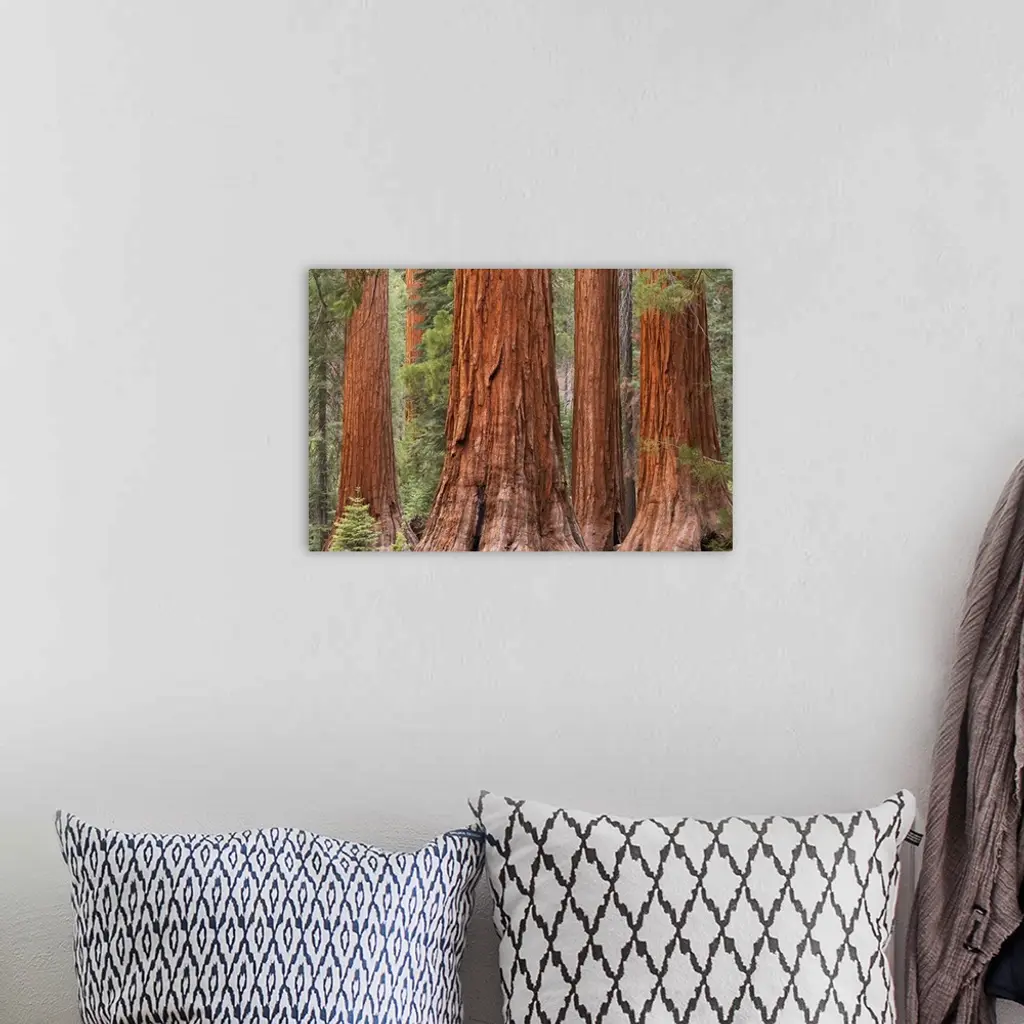 Sturdy redwood trees in a forest in Northern California.
