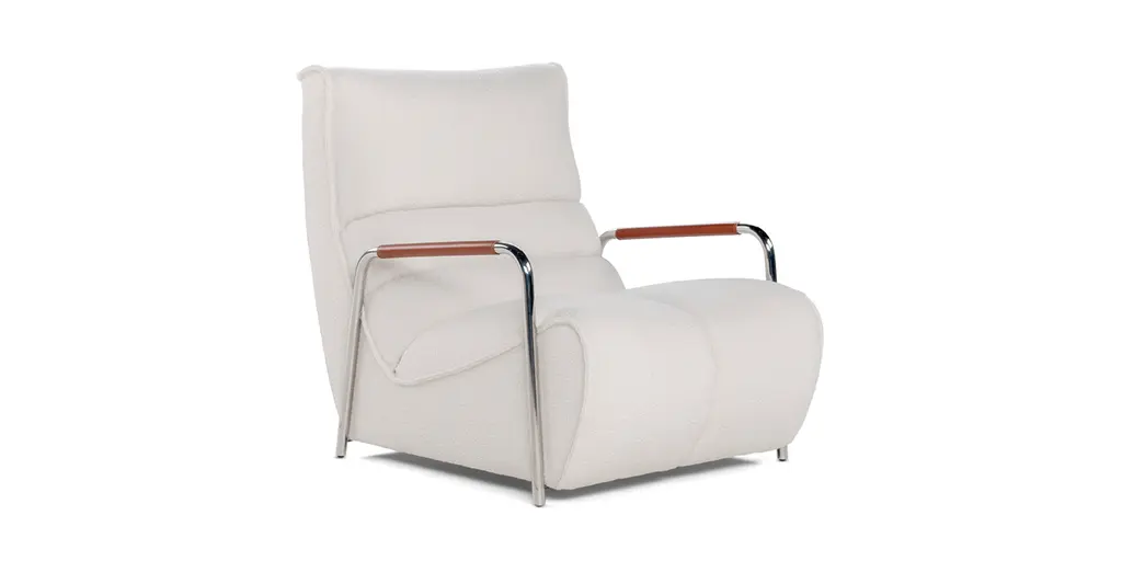 Meet Maris, a sleek vintage-modern styled recliner with lightly shaped wood arms. With tucked-away reclining, Maris fits stylishly into the sleek living room or reading nook while keeping comfort close at hand. Well make it just for you and if you need more, pick from a wide variety of leather, fabric and wood colors in-store.
