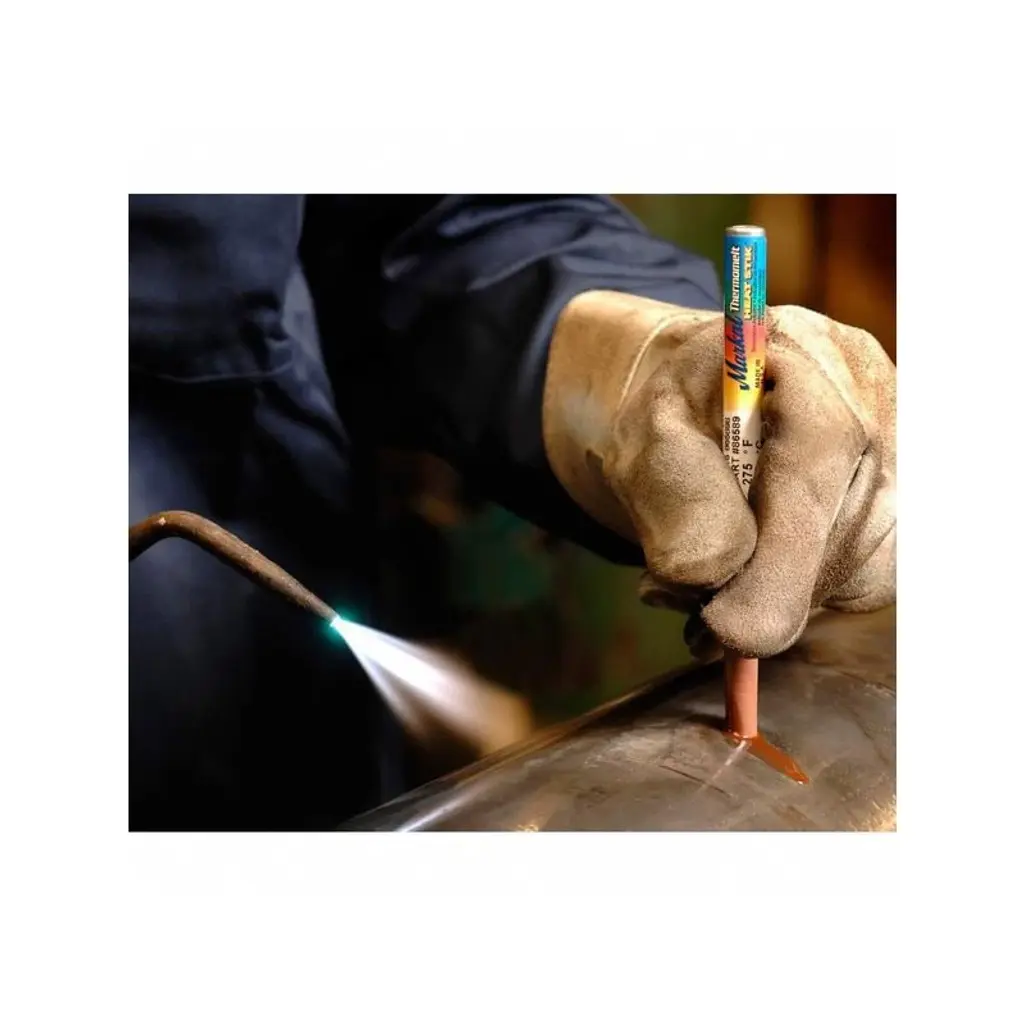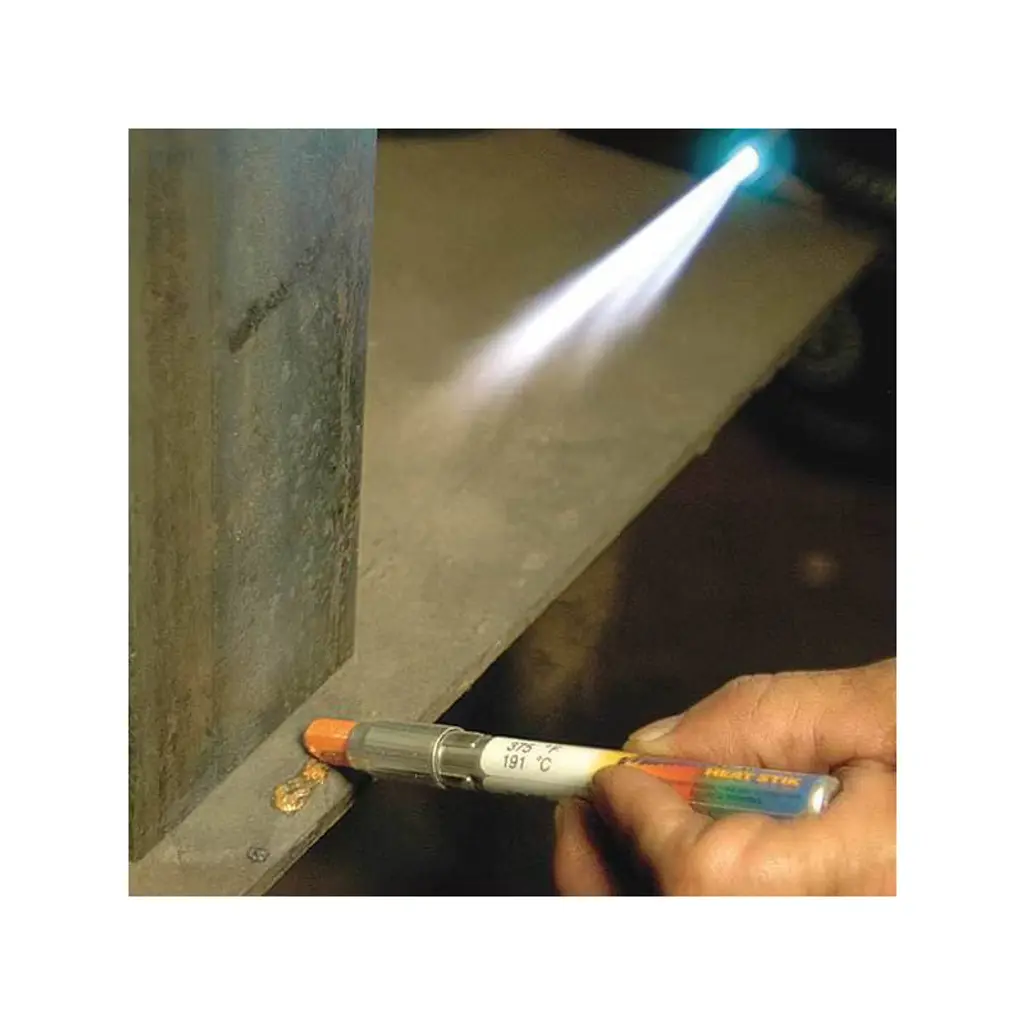 Temperature Indicator, Accuracy +/-1 Percent F, +/-3 Percent C, Container Type Stick, Indicator Temperature 650 Degrees F, Standards ANSI/ASME Code B32.1 and B31.3, ASME Code Sec. I, III and VII, AWS D1.1, NIST Traceable, Compatible Material Type Iron, Steel, Includes Adjustment Ring, Protective Holder, Shirt-Clip, Process Annealing, Interpass Temperature Monitoring, Post-Weld Heat Treating, Pre-Heating, Stress-Relieving, Tip Width 1/2 in