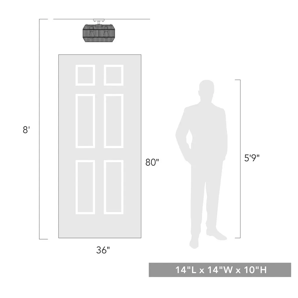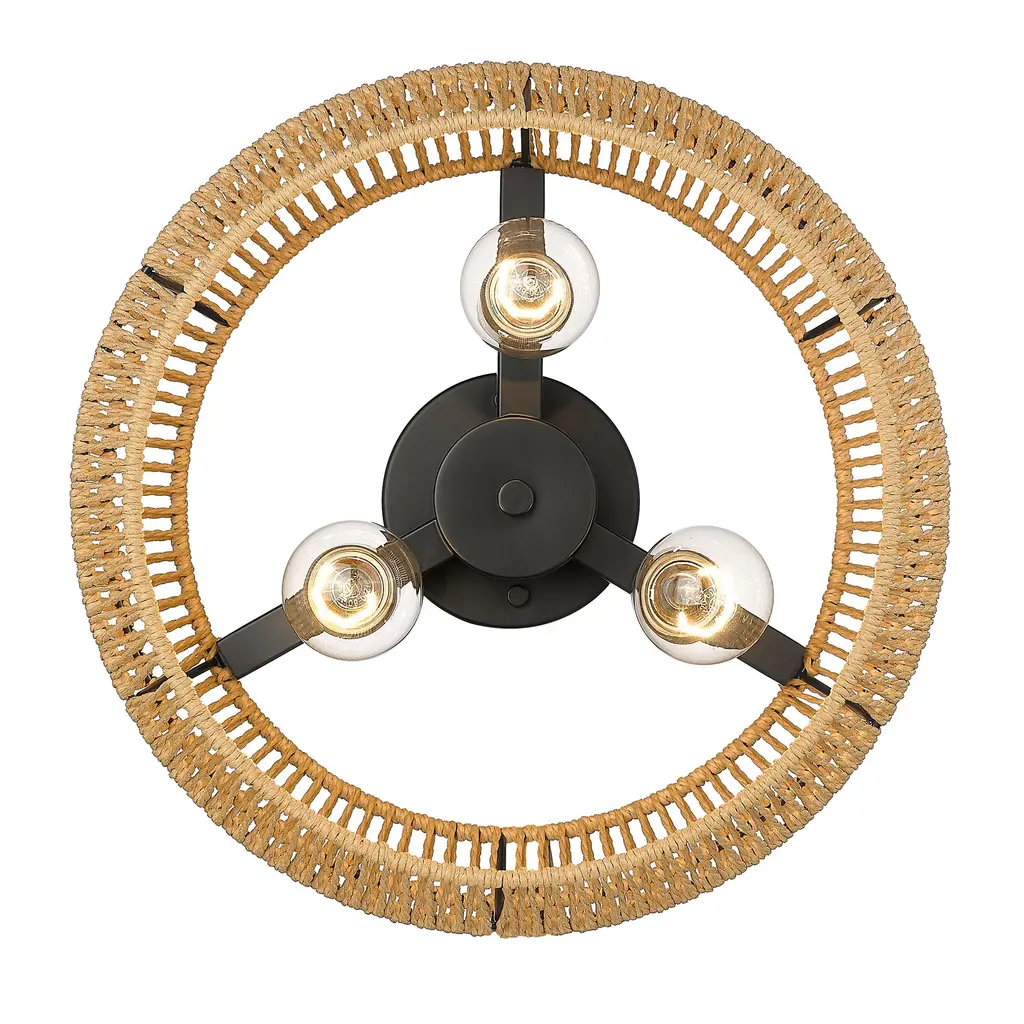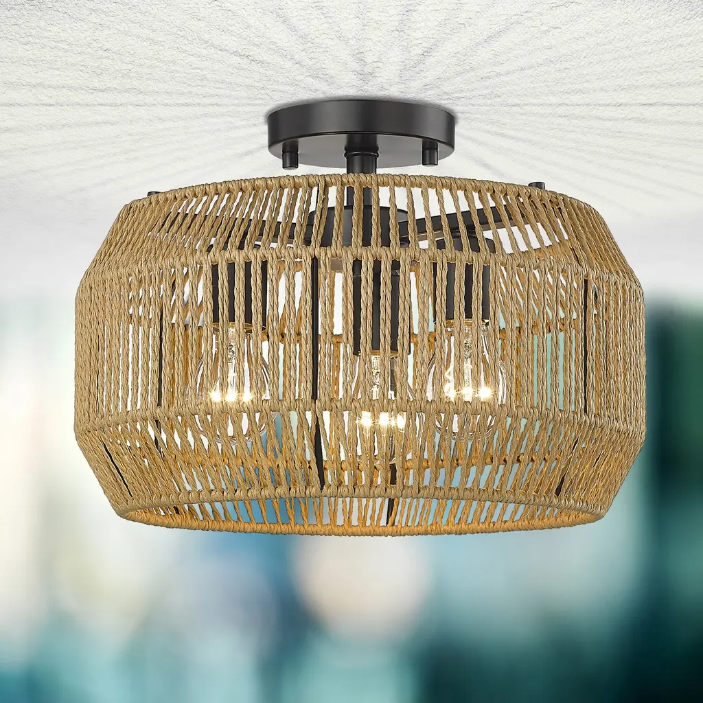 Marlee 14" Wide 3-Light Semi-Flush - Matte Black With Natural Raphia Rope