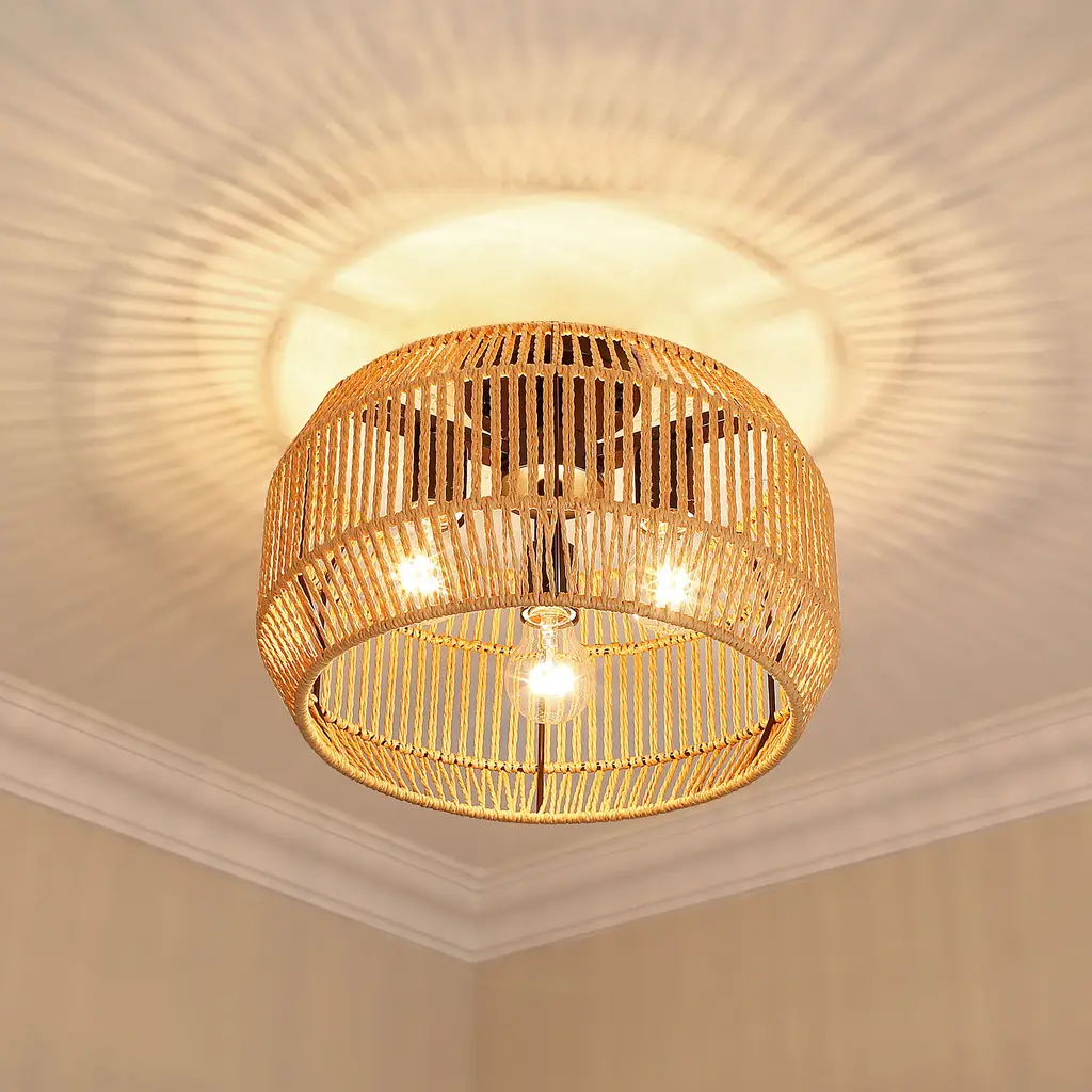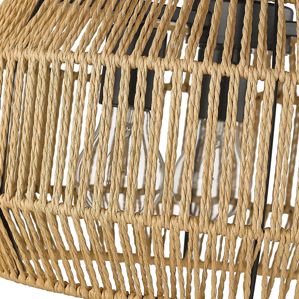The perfect addition to your coastal-inspired dream space, Marlee is casual, rustic elegance in a compact design. The fixtures feature organic materials and geometric shapes. A rope shade works with metal hardware to create a stylish mix of materials. Beneath the shade, partially exposed bulbs provide widespread illumination. The fixtures cast intriguing light and shadow patterns onto nearby surfaces. The handwoven Raphia rope has a modern, contemporary look that is highly adaptable to rattan furniture and decor trends.