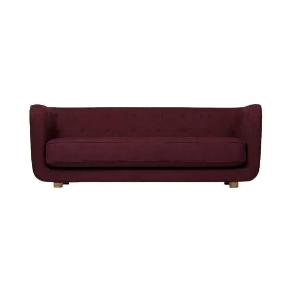 Maroon and smoked oak raf simons vidar 3 vilhelm sofa by lassen dimensions: w 217 x d 88 x h 80 cm materials: textile, oak. Vilhelm is a beautiful padded 3-seater sofa designed by flemming lassen in 1935. A sofa must be able to function in several ways. It should invite calm and contemplation. Create a private space you can hide in and at the same time invite to life and play. It must be able to withstand sitting on the backrest or on the armrests and then it must be able to stand in the middle of the room if you want to. In addition to being aesthetically beautiful and harmonious, the design makes absolute sense in relation to these parameters. By lassen is a danish design brand focused on iconic designs created by mogens and flemming lassen, founded by lassens’ relatives in 2008.