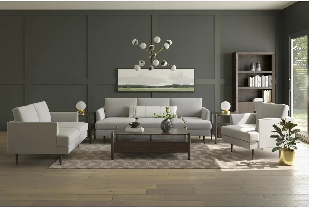 Marques Cobblestone White Fabric 3 Piece Set brings mid-century modern elegance to your living room furniture. Its clean lines and high sheltering arms create a stylish silhouette in crisp white upholstered fabric perfect for studio living. This stylish set includes a sofa and loveseat for complete seating solutions.