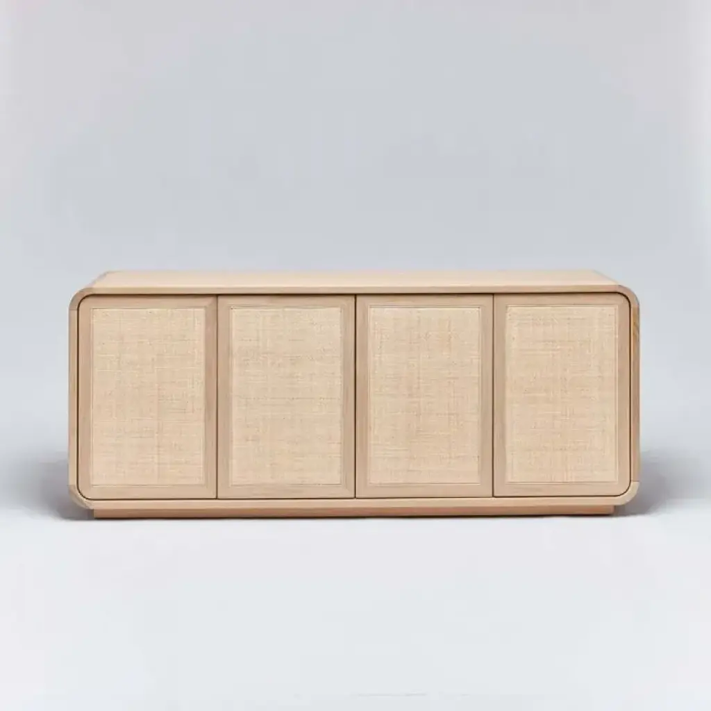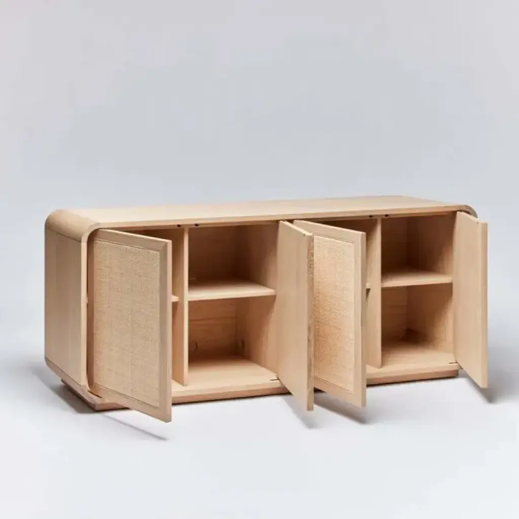 With the pairing of saddle-finished oak and blonde rattan, the Marsh Credenza and its midcentury vibes make for an easy breezy addition. This item is made of solid wood. Item will not be exactly as pictured, subtle deviations in hue after finishing can be expected as a result of natural variations in coloration of the base material.