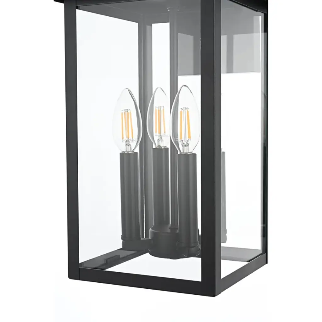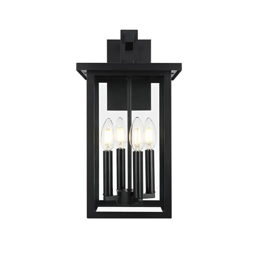 This modern outdoor wall sconce combines simplicity and functionality to enhance your home's exterior. Crafted with durable iron and crystal-clear glass panels, it brings a sleek and modern touch that will withstand the elements while delivering outstanding style. Its linear rectangular frame, paired with a timeless black finish, makes it the perfect addition for enhancing the architectural appeal of porches, entryways, or patios. The transparent glass panes give an uninterrupted view of the warm bulb, creating a welcoming ambiance for your outdoor spaces.