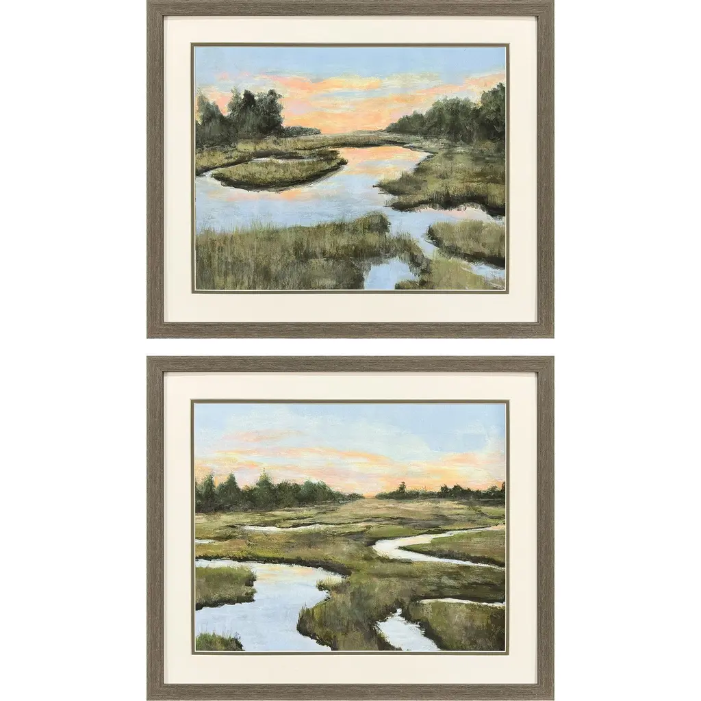 Escape to tranquility. This framed wall art set showcases serene landscapes with lakes and rivers. The closed corner frame construction and tempered glass cover add a touch of elegance. Perfect for adding a peaceful touch to any space.