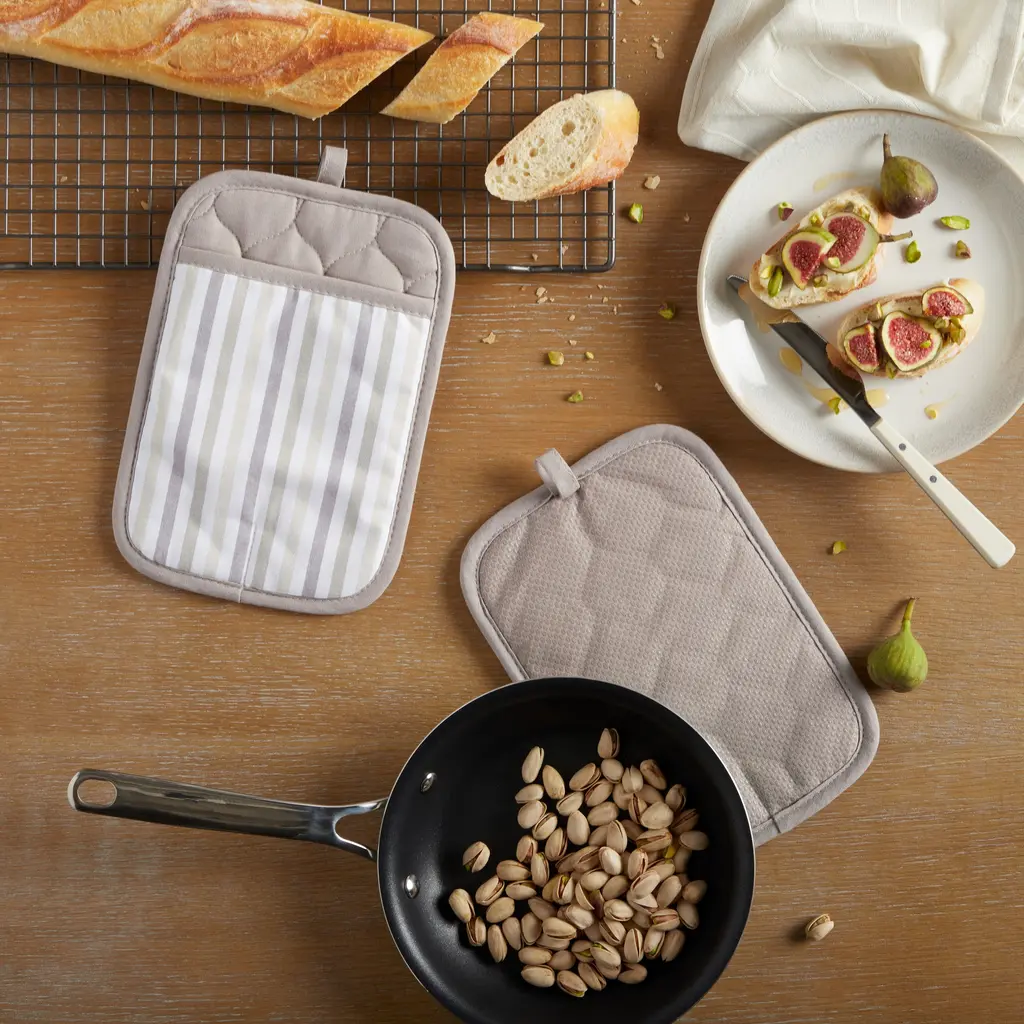 Martha Stewart Daisy Stripe Pot Holder Set 2-Pack - 7"x10" - Beige/brown