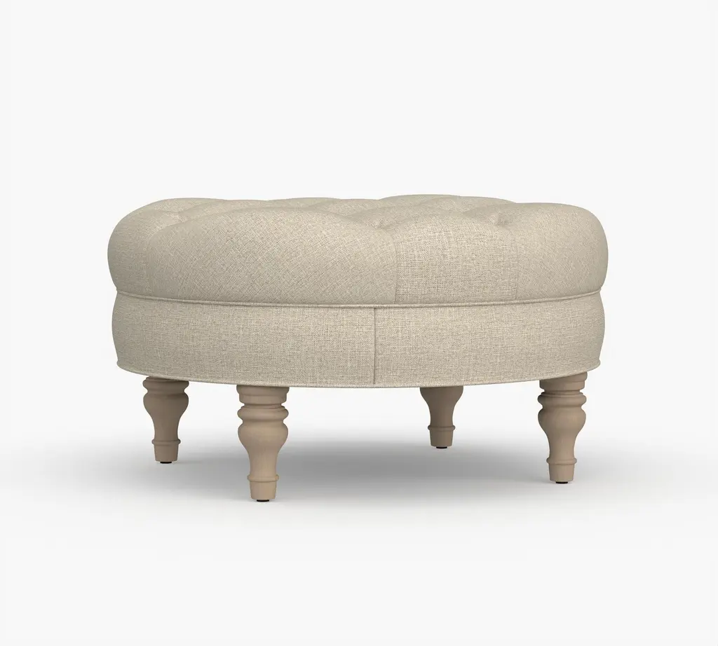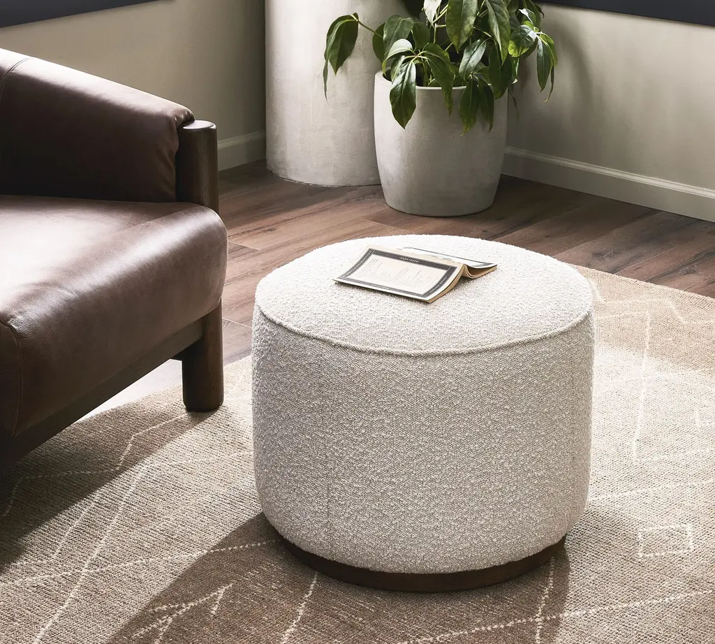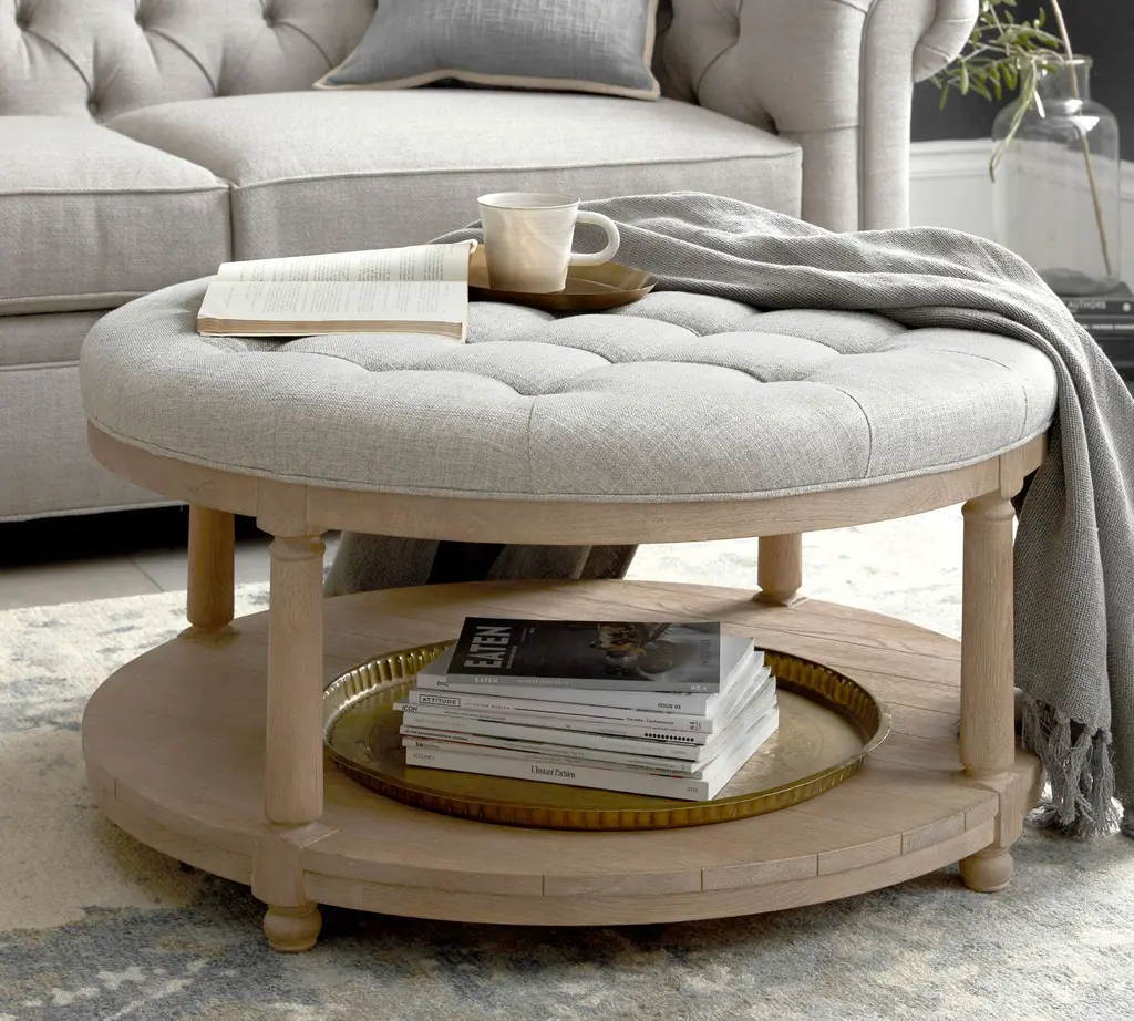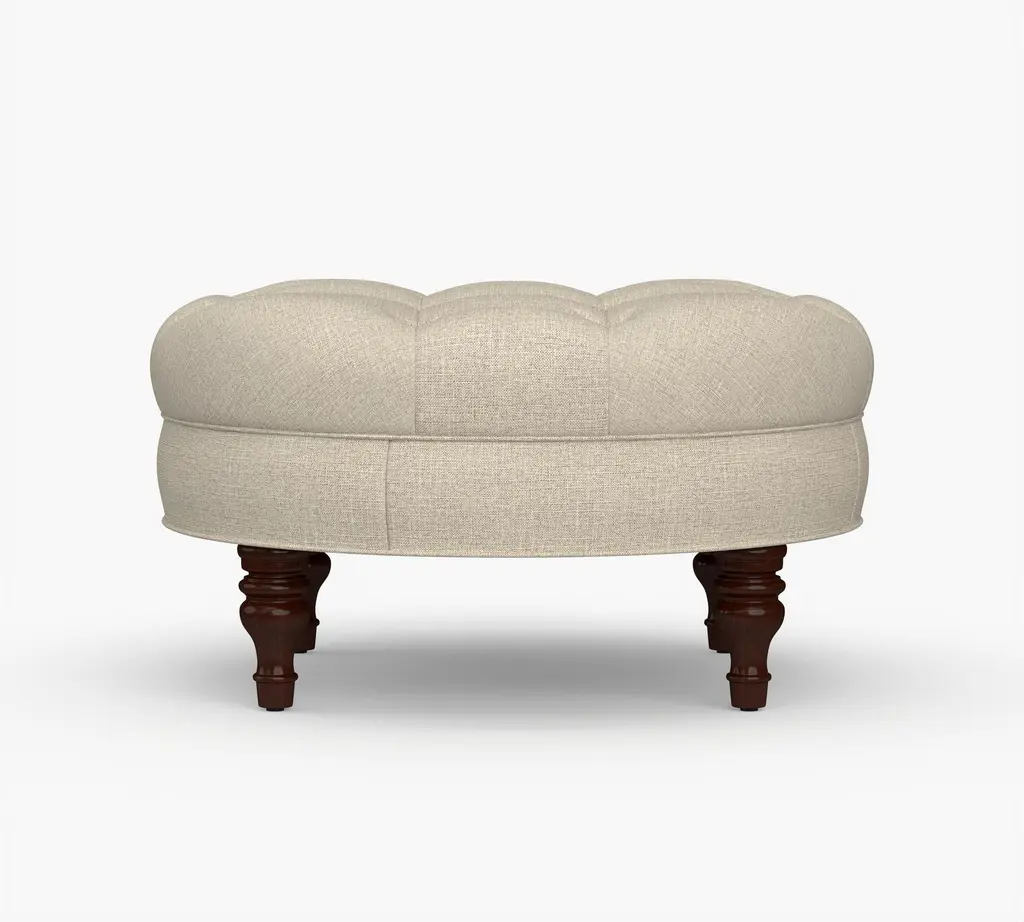 Richly covered in your choice of fabric, the Martin Upholstered Round Ottoman is fashioned after classic furniture of English gentleman’s clubs. Two rows of nailheads along the piped edges accentuate its handsome silhouette. It’s perfect as seating, footrest or oversized coffee table.