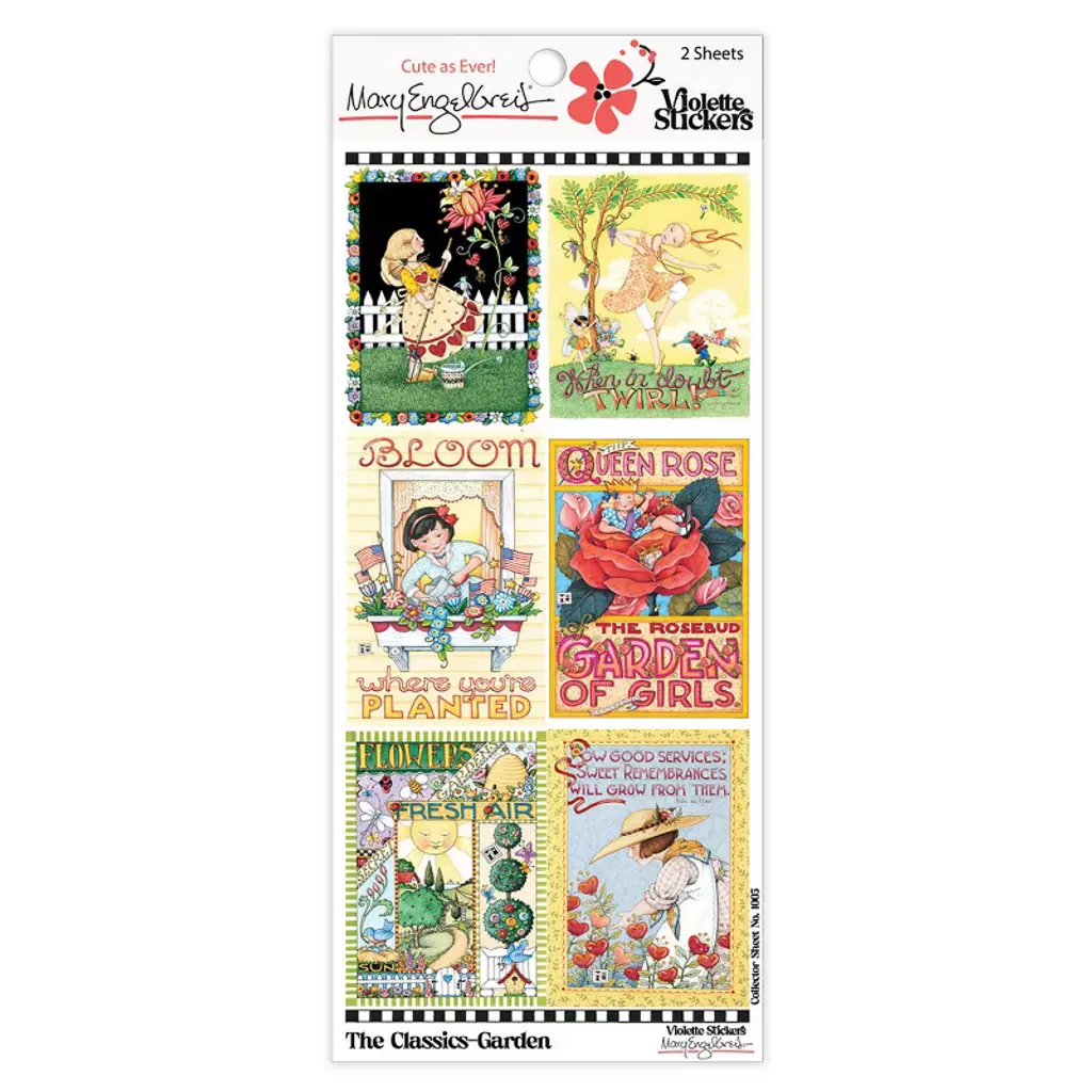 Have a heart... Mary Engelbreit's art has been loved by generations, and she continues to create for her fans. - 2 Sheets of 4" x 8" stickers packaged in a plastic sleeve - 10 stickers per sheet