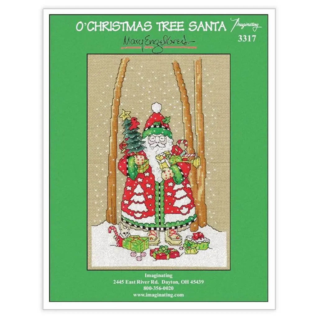 The jolliest elf himself is bringing all of the Christmas cheer and more in this holiday design! "O'Christmas Tree Santa" is designed to be stitched on 14 count Smoketone Aida fabric and uses 28 different colors of floss. Kit includes: instructions, floss, fabric, needle Finished size 7.1" x 10.9" Model Specifications - Stitch count: 99 w x 152 h - Project size: 7.1" x 10.9" on 14 ct - Floss: 28 DMC floss colors - Fabric: 14 ct Smoketone Aida