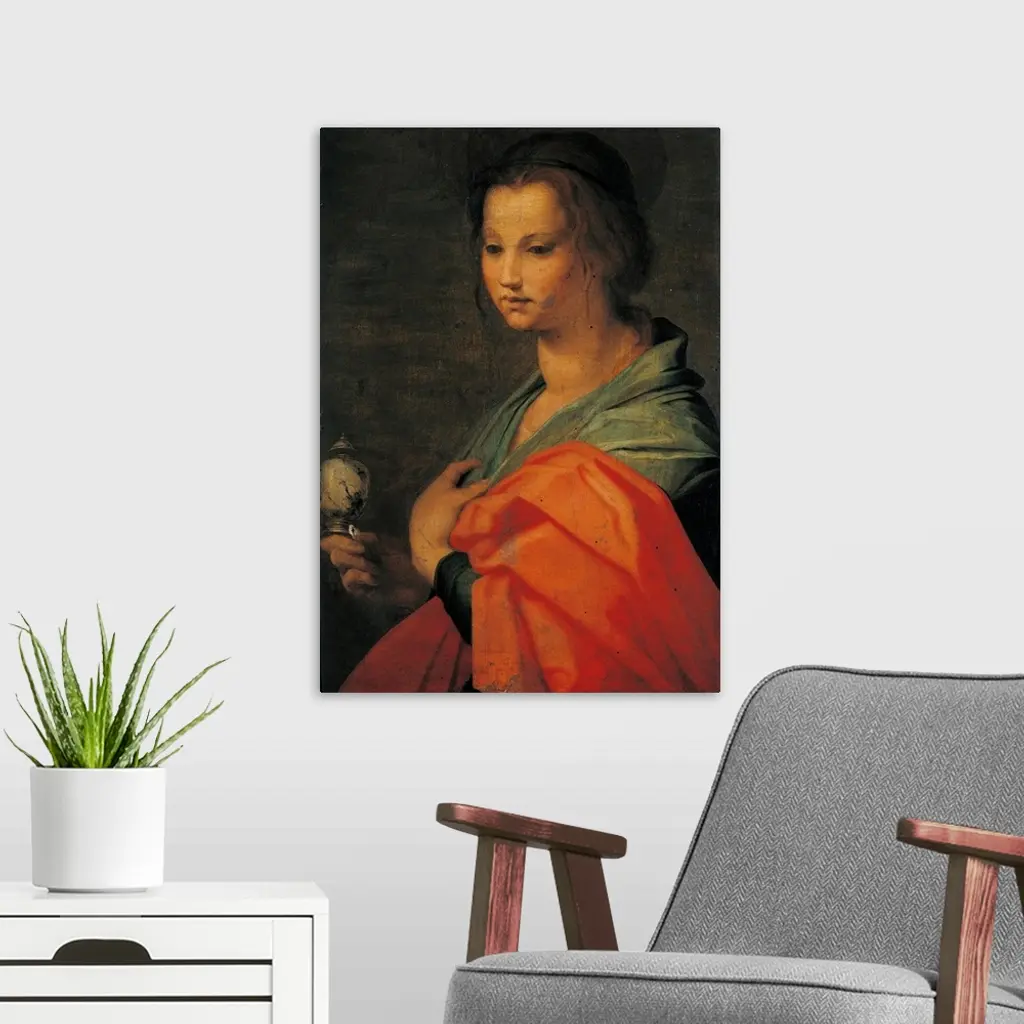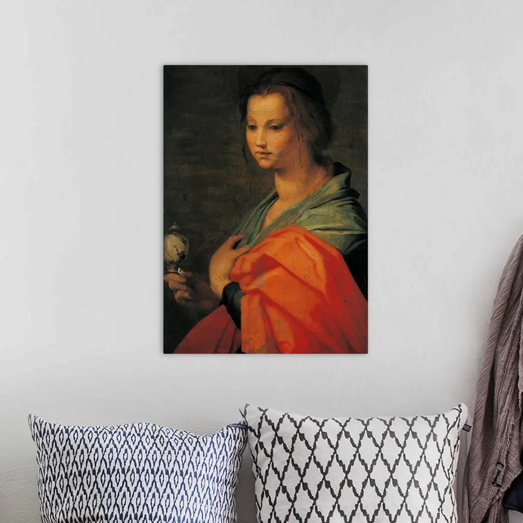 Italy, Lombardy, Milan, Brera art gallery. All. Magdalene young woman bust half profile red drape ampulla drapery. (102884) Everett Collection\Mondadori Portfolio