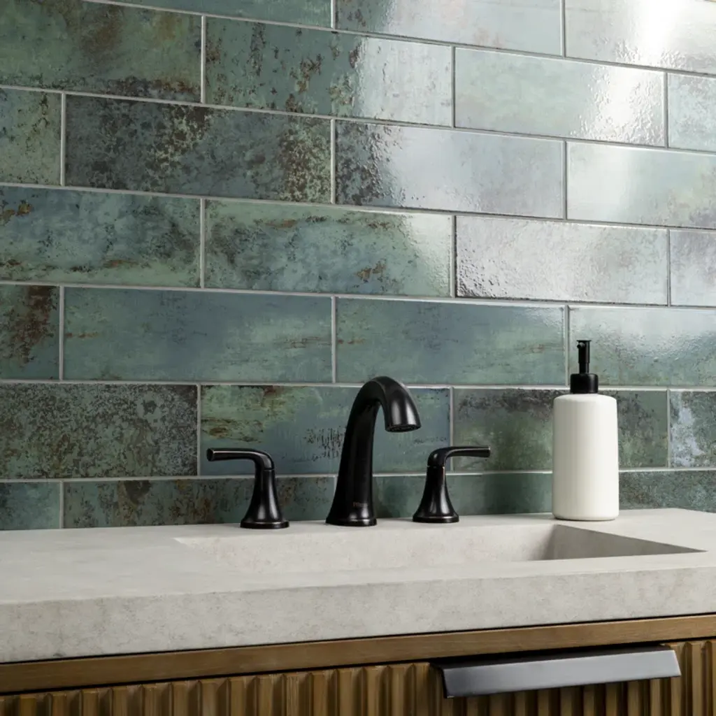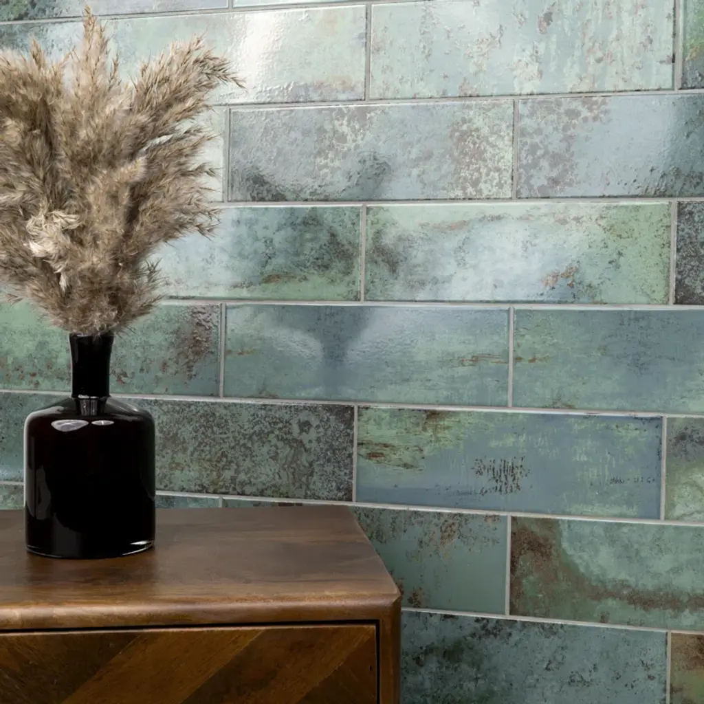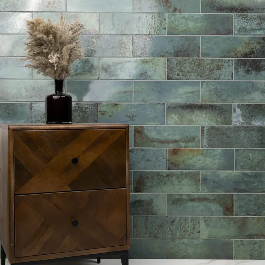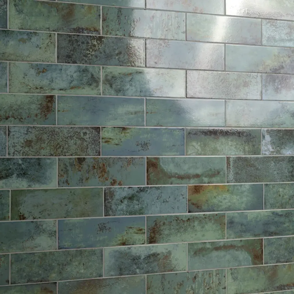 Marza glossy ceramic subway tiles feature a striking blend of tones that are a one-of-a-kind addition to any home. Earthy brown tones, blues, greens, creamy whites, gold, bronze, copper, and grays provide an extremely delicate and refined quality. A glossy finish highlights the overall oxidized appearance of the tiles for an aesthetic that is both antique and modern. Scratch-resistant, stain-resistant, and easy to maintain, Marza is durable and versatile, allowing for design flexibility and creative installations in your kitchen, shower, bath surround, and many more wall applications.