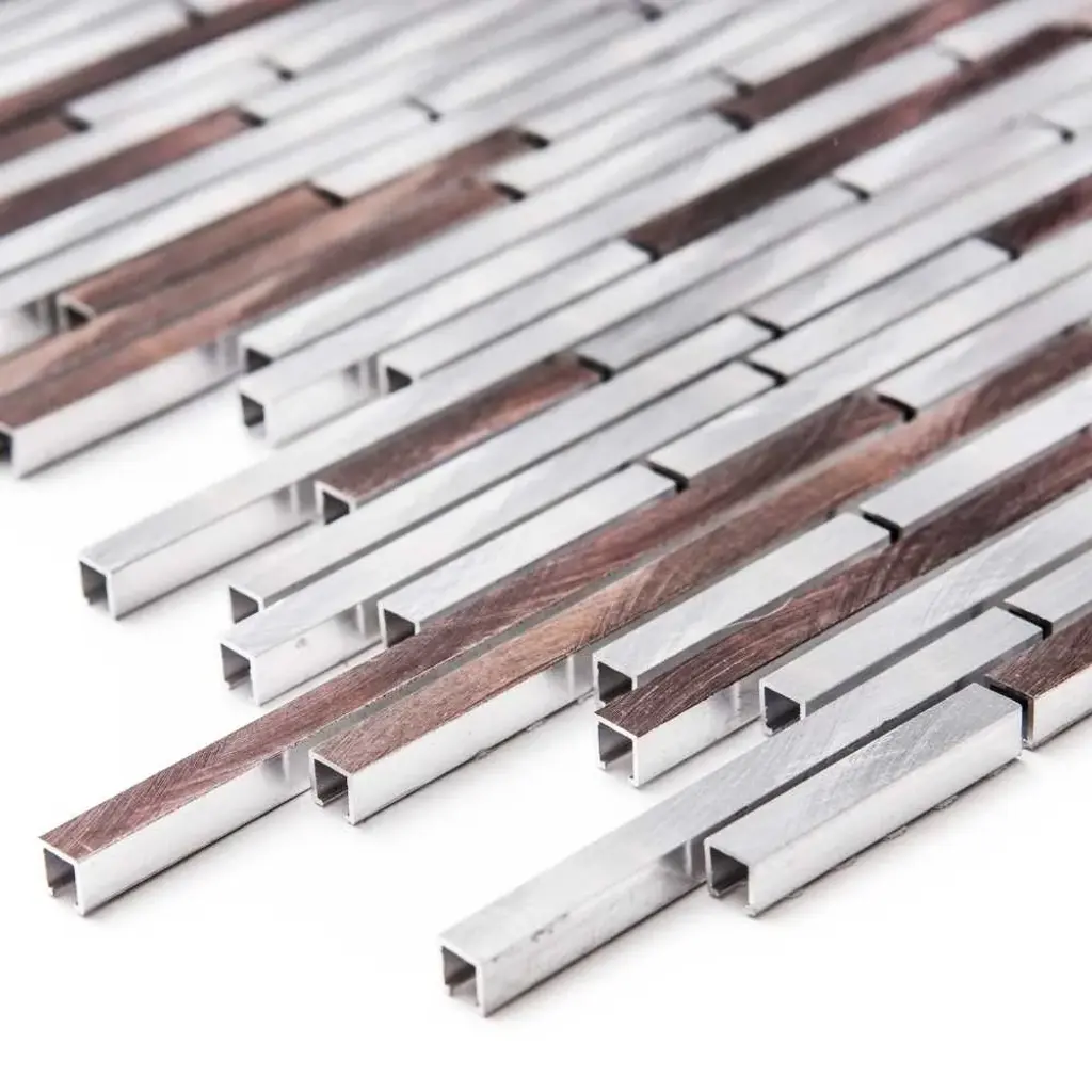 Mason Sleek 1" X 3" Metal Backsplash Wall Tile - 1 Sheet (1 Sq. Ft.) - Noce