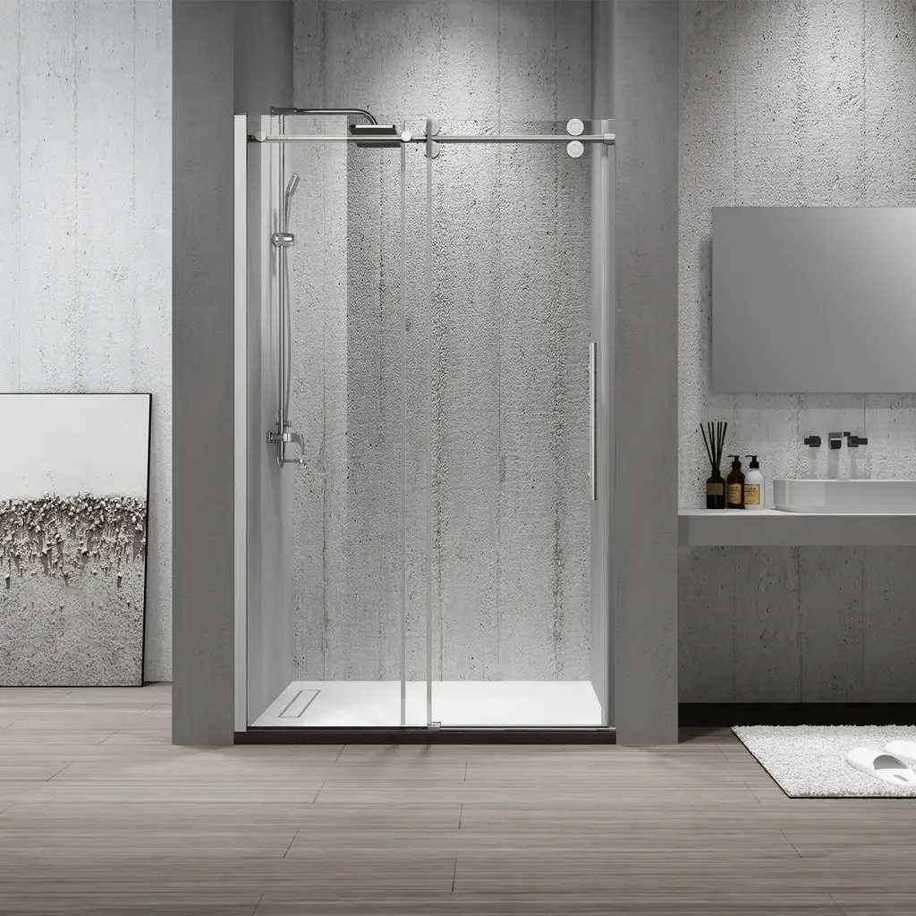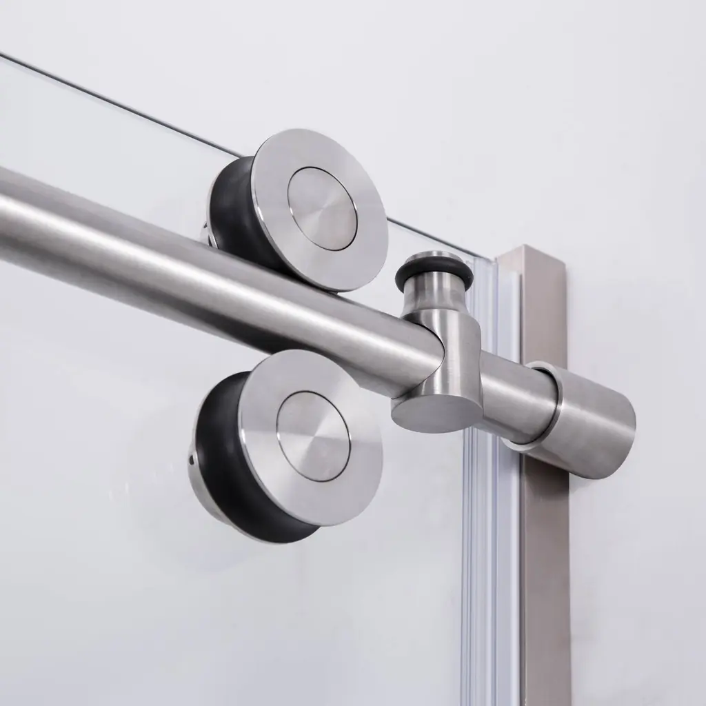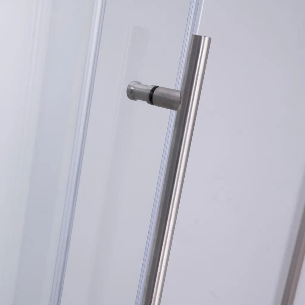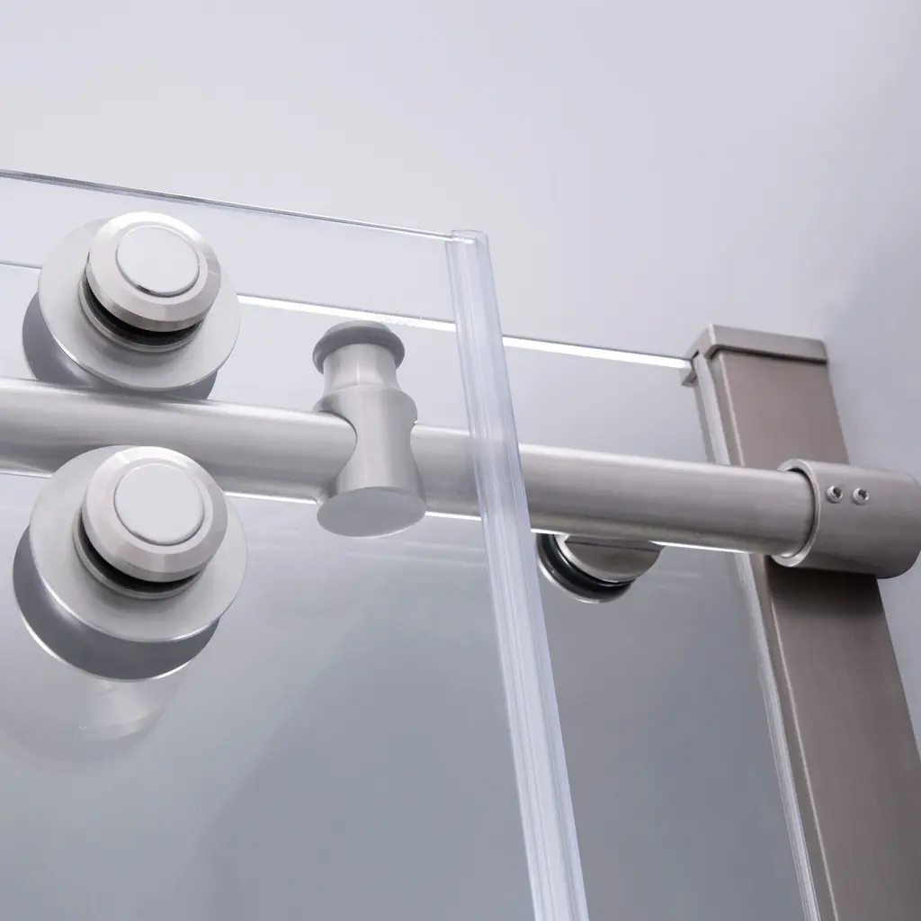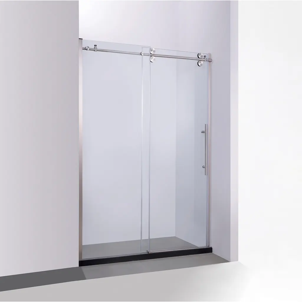 The Massa Shower Enclosure Series features a stunning frameless look that brings style and elegance to your bathroom. Its roll-top design ensures quiet, ultra-smooth opening and closing. The 8mm-thick tempered glass is protectant-coated to help it retain flawless shine and clarity, shower after shower. Feature Stainless steel roll-top single sliding door 8mm clear glass with easy-clean coating Shower door available with Polished Silver or Brushed Nickel finish Stainless steel top rail and main fittings Stainless steel handle with 25mm dia Tempered glass with ANSI Z97.1-2015 certificate * Easy assembly. Installation instructions, mounting bracket and hardware included.