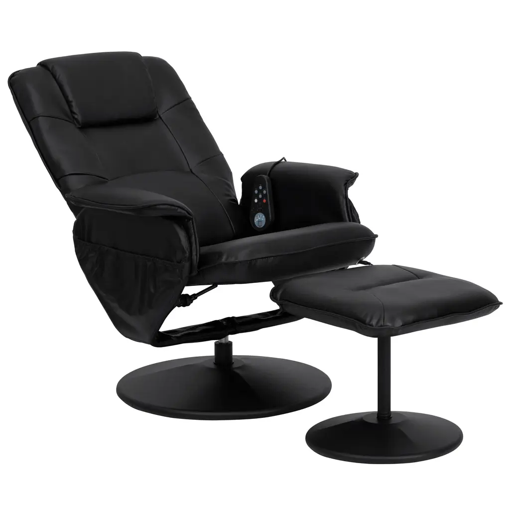 Massaging Multi-Position Recliner With Deep Side Pockets And Ottoman With Wrapped Base