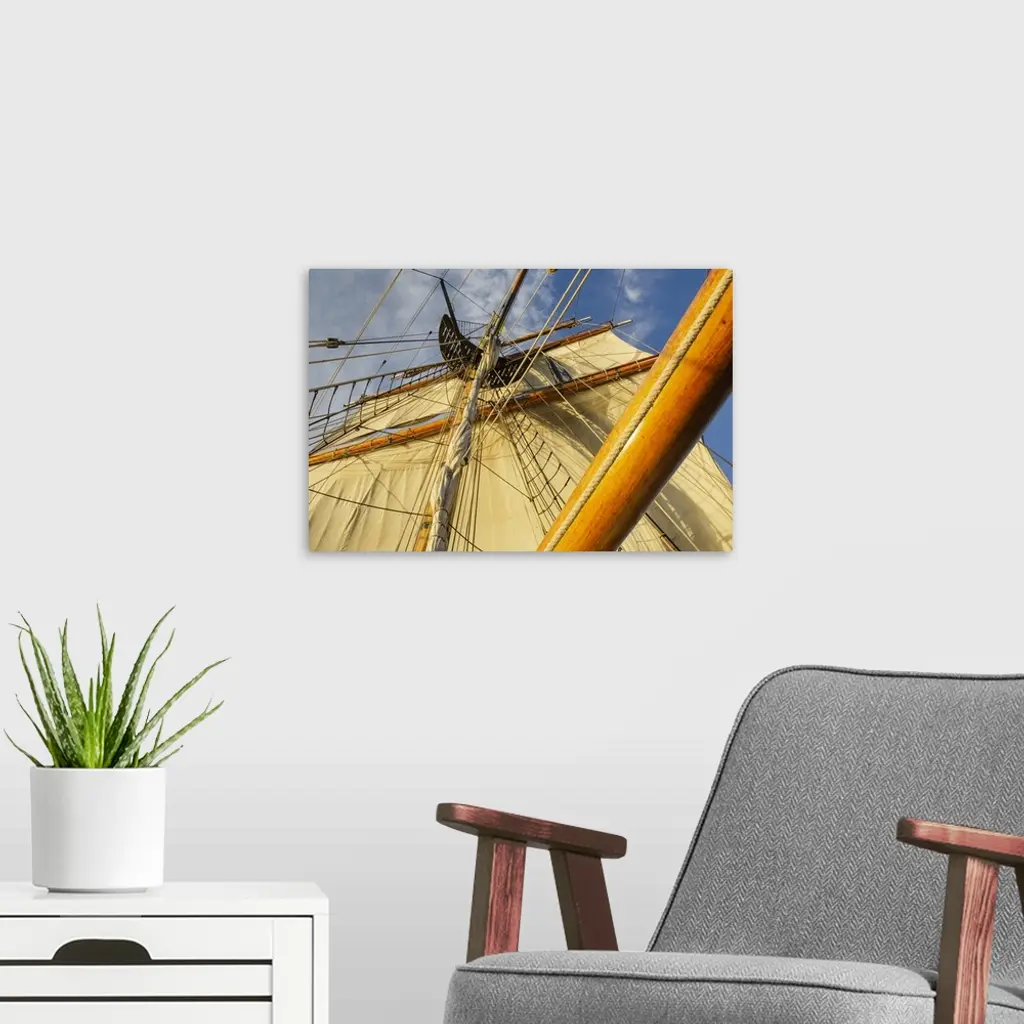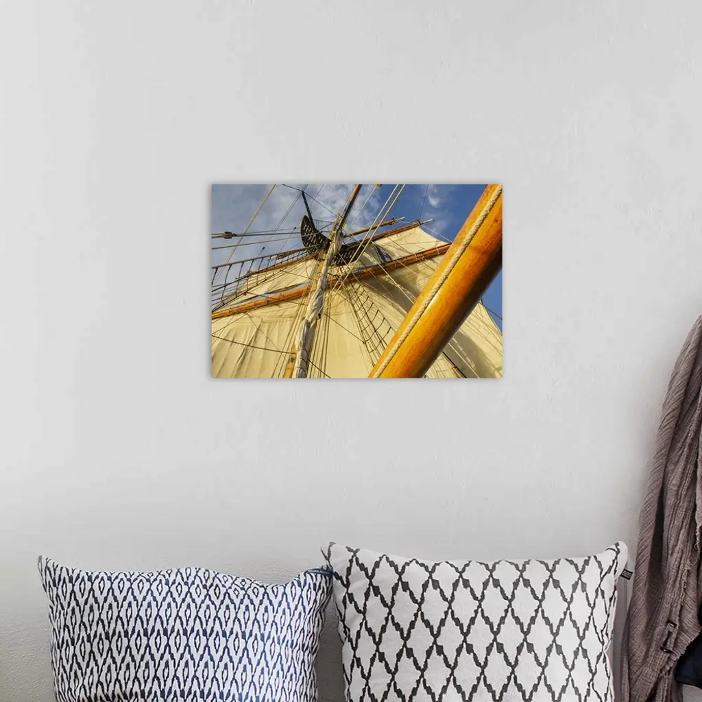 Mast rigging and sails of Hawaiian Chieftain, a Square Topsail Ketch. Owned and operated by the Grays Harbor Historical Seaport, Aberdeen, Washington State