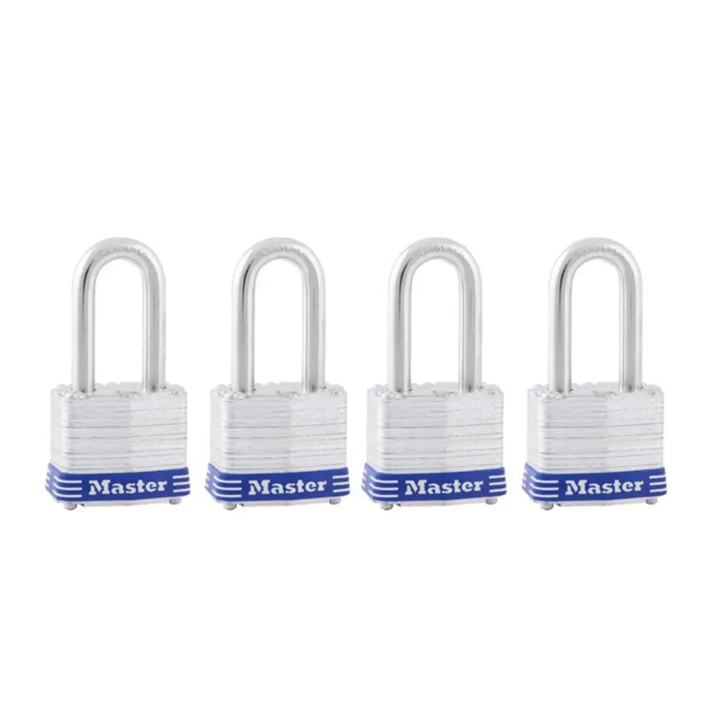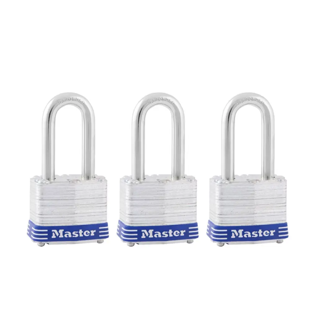 The Master Lock No. 1TRILJ Laminated Padlocks feature a 1-3/4in (44mm) wide laminated steel body for maximum strength and reliability. The 5/16in (8mm) diameter shackle is 2in (51mm) long and made of hardened steel, offering extra resistance to cutting and sawing. The 4-pin cylinder prevents picking and the dual locking ball bearings provide resistance against prying and hammering. The Limited Lifetime Warranty provides peace of mind from a brand you can trust.