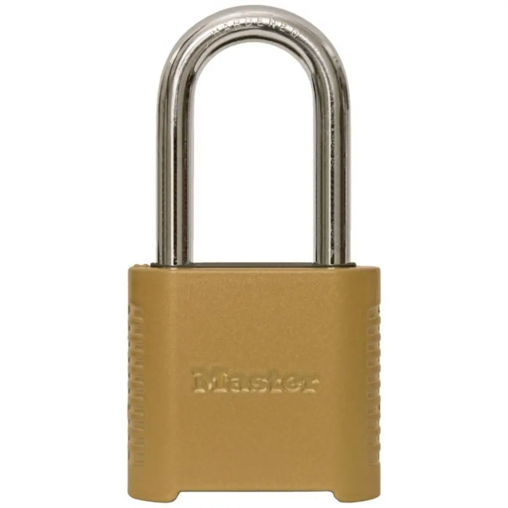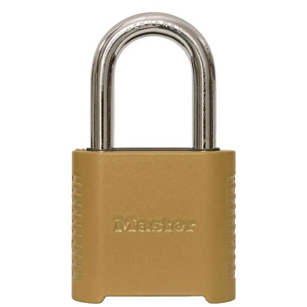The Master Lock No. 175DLH set your own combination padlock features a 2 inch (51 mm) wide solid body for strength and reliability. The 5/16 inch (8 mm) diameter shackle is 2-1/4 inch (57 mm) long and made of hardened steel, offering extra resistance to cutting and sawing. The 4-digit dialing allows for thousands of possible numeric combinations. The limited lifetime warranty provides peace of mind from a brand you can trust.