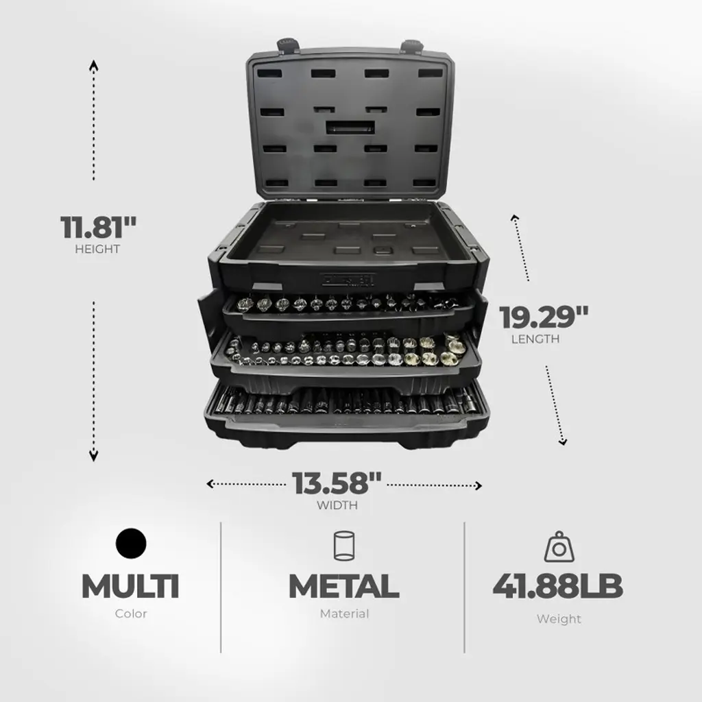 Master Mechanic 205 Piece Mechanics Sae Metric Socket And Tool Set With Case, Drawers, And Chrome Finish For Tools And Home Improvement