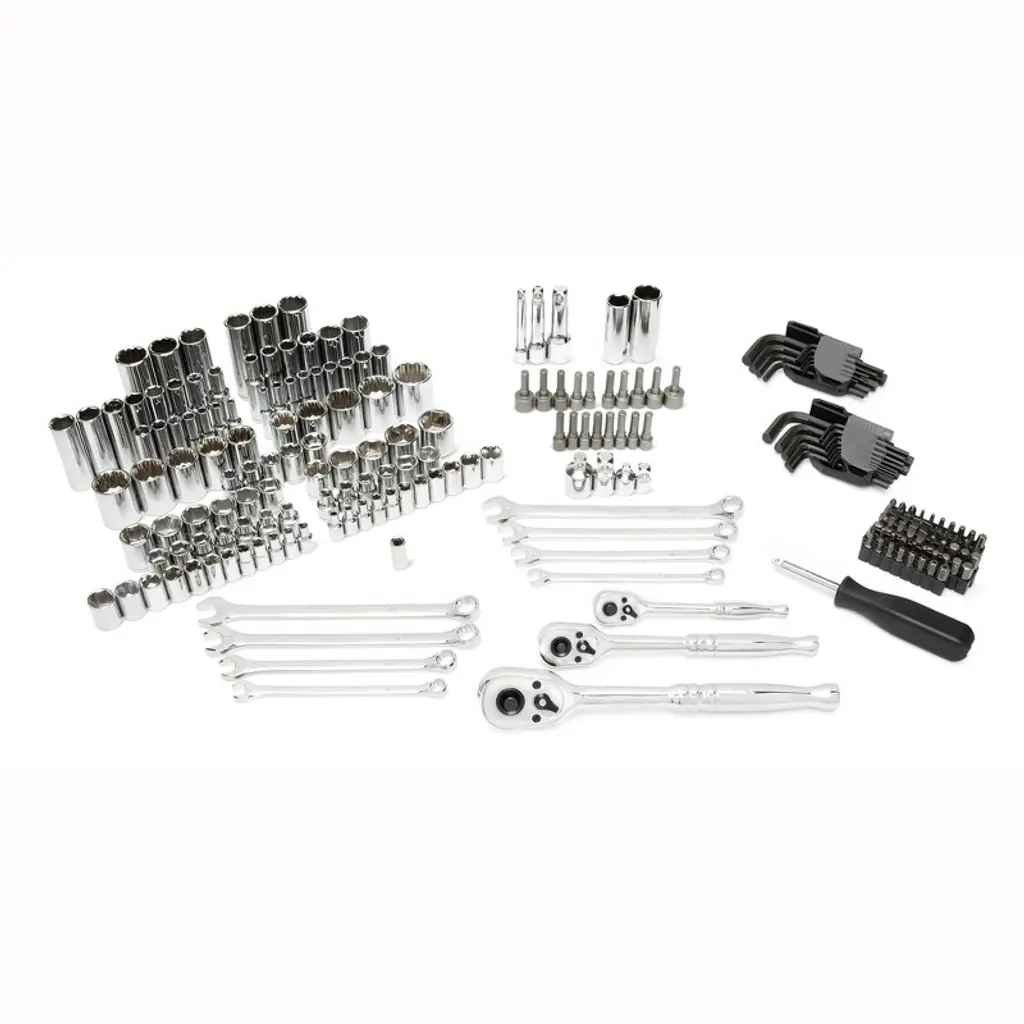 Discover the unparalleled versatility and precision of the Master Mechanic 205-Piece Mechanics SAE Metric Socket and Tool Set with Case. Crafted for professional mechanics and DIY enthusiasts, this comprehensive set equips you with everything needed to tackle any mechanical project quickly and confidently. With (3) 72-tooth ratchets in 1/4-inch, 3/8-inch, and 1/2-inch drive sizes, and 48 metric sockets, this set ensures compatibility with a wide range of fasteners. Including 3 extensions and 4 adapters, this comprehensive kit enables effortless access to tight spaces. Say goodbye to struggling with spark plugs, thanks to the 2 dedicated spark plug sockets. Plus, with 20 nut setters and 4 Memetricombination wrenches, tightening or loosening nuts of any size becomes a breeze. The 22 hex keys add versatility, always preparing you for intricate tasks. Handle screw-driving tasks easily using the magnetic bit driver, bit coupler, and 48 assorted bits. From automotive repairs to household maintenance, this set has you covered. Upgrade your toolkit with the Master Mechanic 205-Piece Mechanics SAE Metric Socket and Tool Set and experience the satisfaction of having the right tool for every task. With precision-engineered tools backed by quality craftsmanship, you'll be ready to tackle any project confidently and precisely.