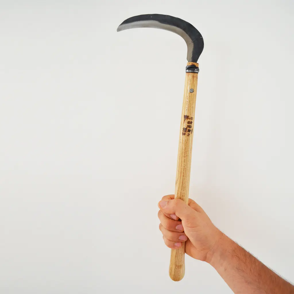 Fall in love with gardening again by choosing the beautifully crafted tools from Master Shin’s Anvil to complete your chores. Designed with a longer handle and a curved blade, the Master Shin’s Anvil Sickle is ideal for cutting grass and twigs. This must-have gardening tool is perfectly balanced and a pleasure to use. It features a rounded handle made from chestnut or oak wood that has been dried in the shade for years to achieve the right weight, strength and water resistance. Likewise, the blade is crafted by hand to last. Made from spring steel used in the auto industry to prevent warping, this sickle is strong and sharp as well as long-lasting. A steel band and signature markings complete the design.