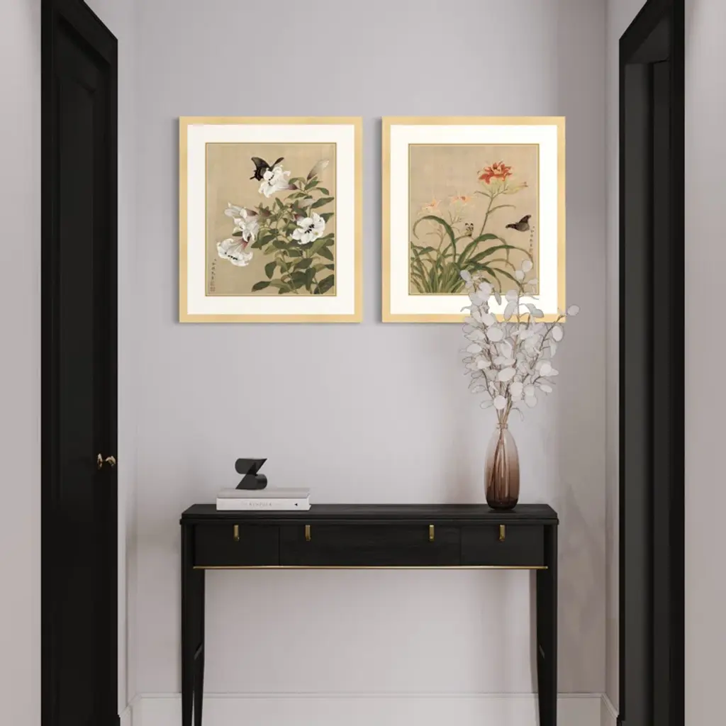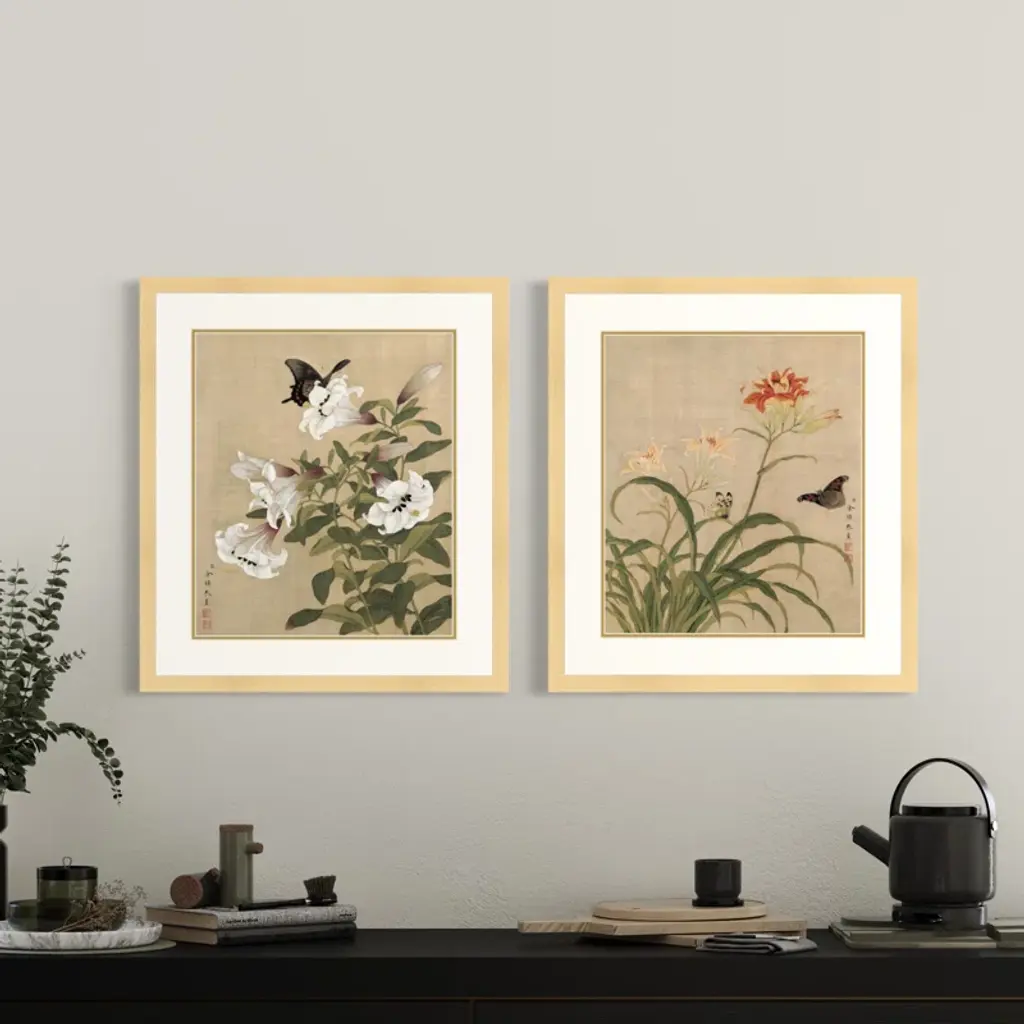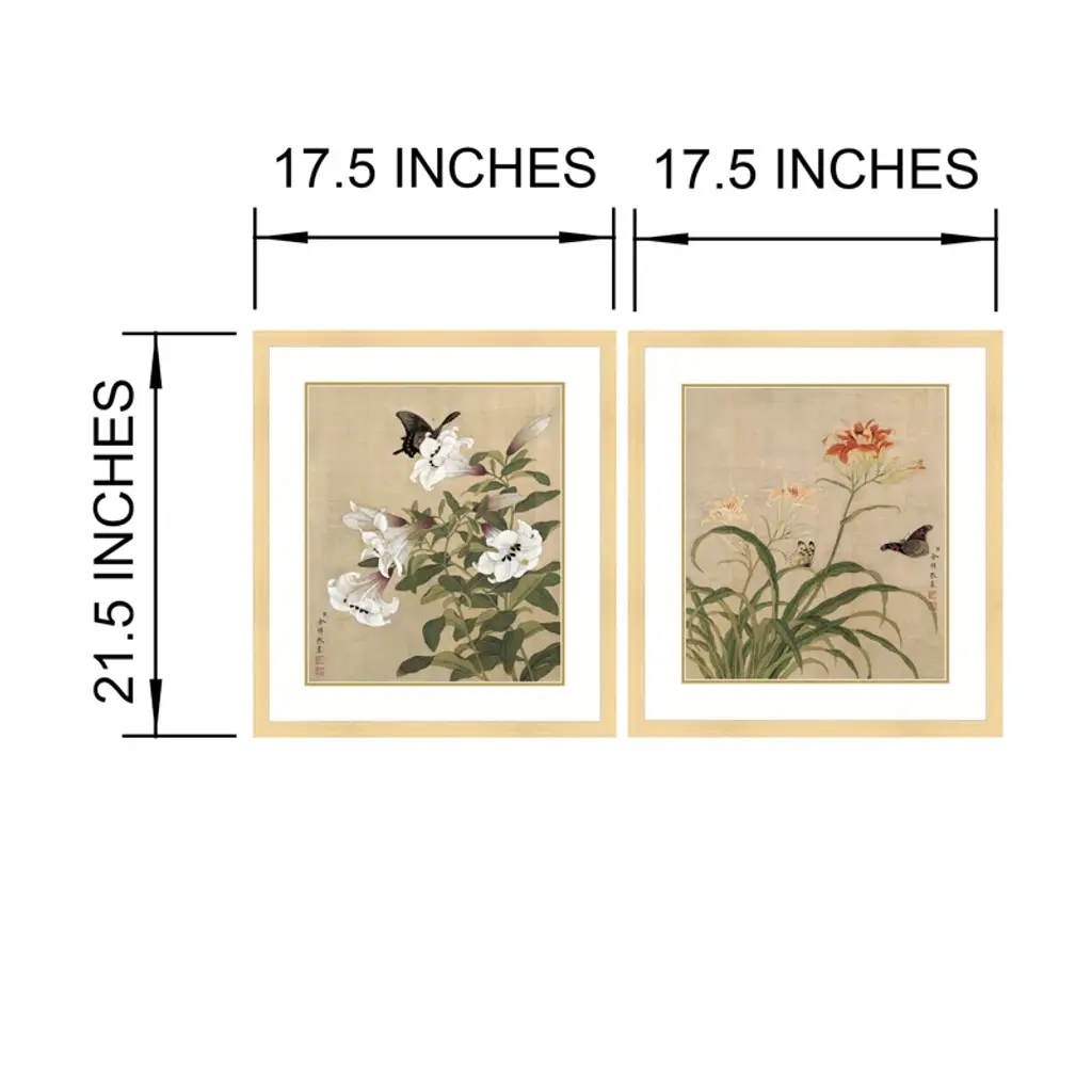 Masterpiece Collection Butterflies Amidst Flowers By Yu Zhi - 2 Piece Single Picture Frame Print Set