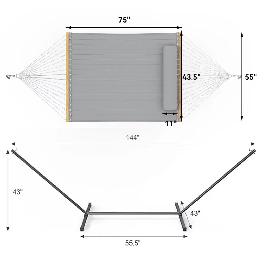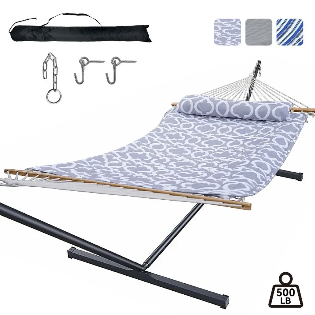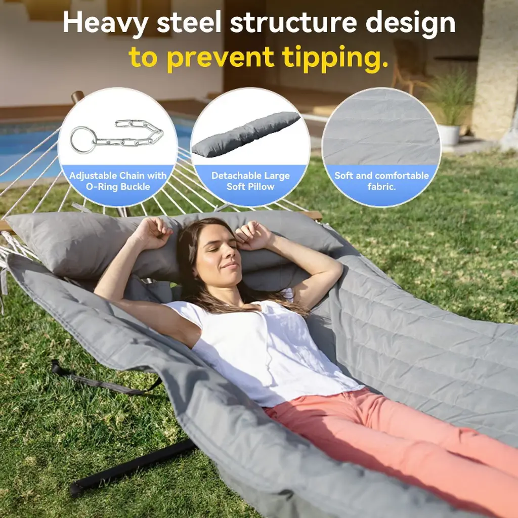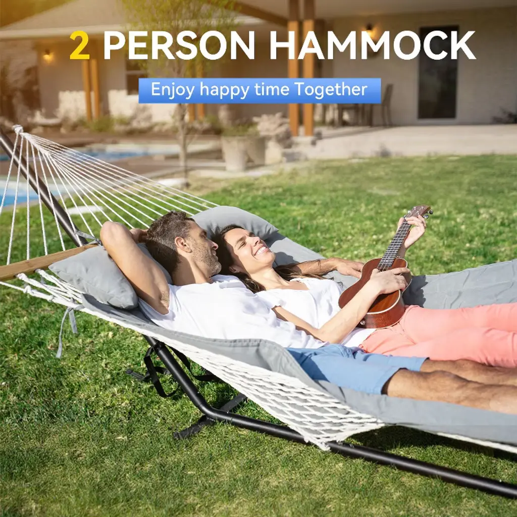 Mastgoal 2-person Cotton Rope Double Hammock With Stand, Removable Polyester Pad, 500lbs Capacity