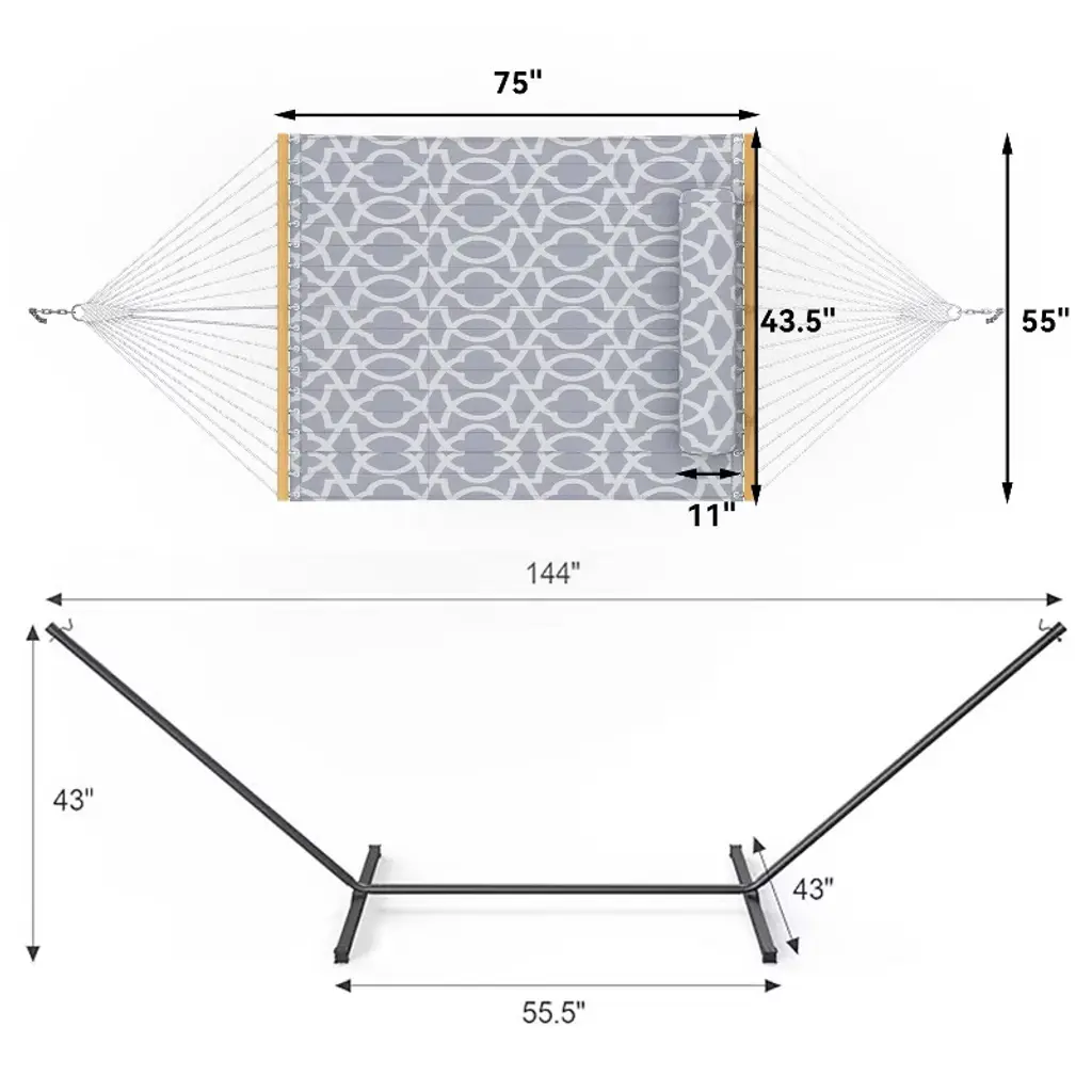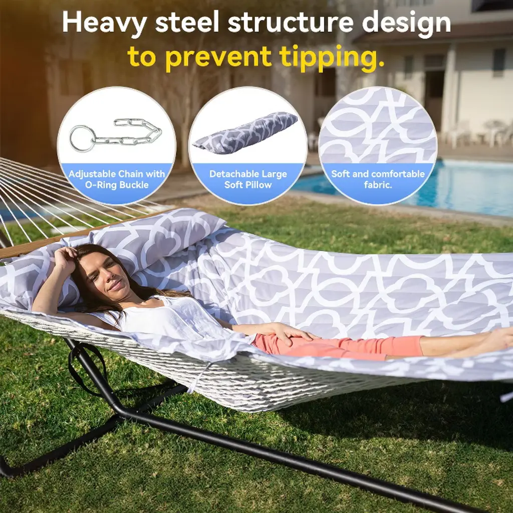 Mastgoal 2-person Cotton Rope Double Hammock With Stand, Removable Polyester Pad, 500lbs Capacity