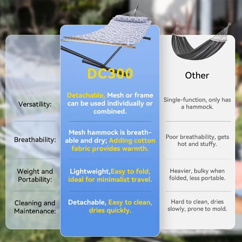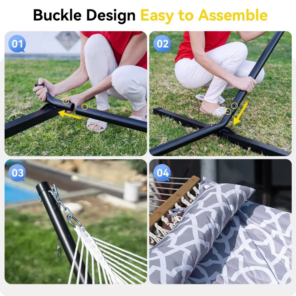 Mastgoal Double Hammock with Stand, a perfect blend of comfort, durability, and convenience. This hammock is designed to enhance your relaxation experience, whether you're at home or on the go. Embrace a leisurely lifestyle with the Mastgoal Double Hammock with Stand. It's suitable for multiple scenarios, whether you want to read a book under the sun, take a nap in the shade, or just enjoy the outdoors with your loved ones.