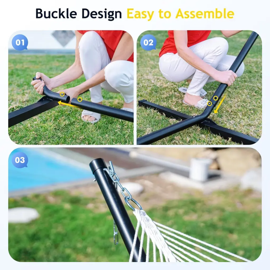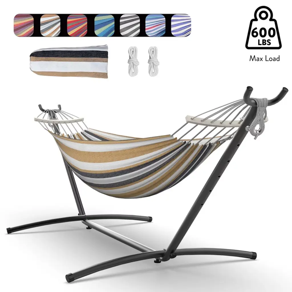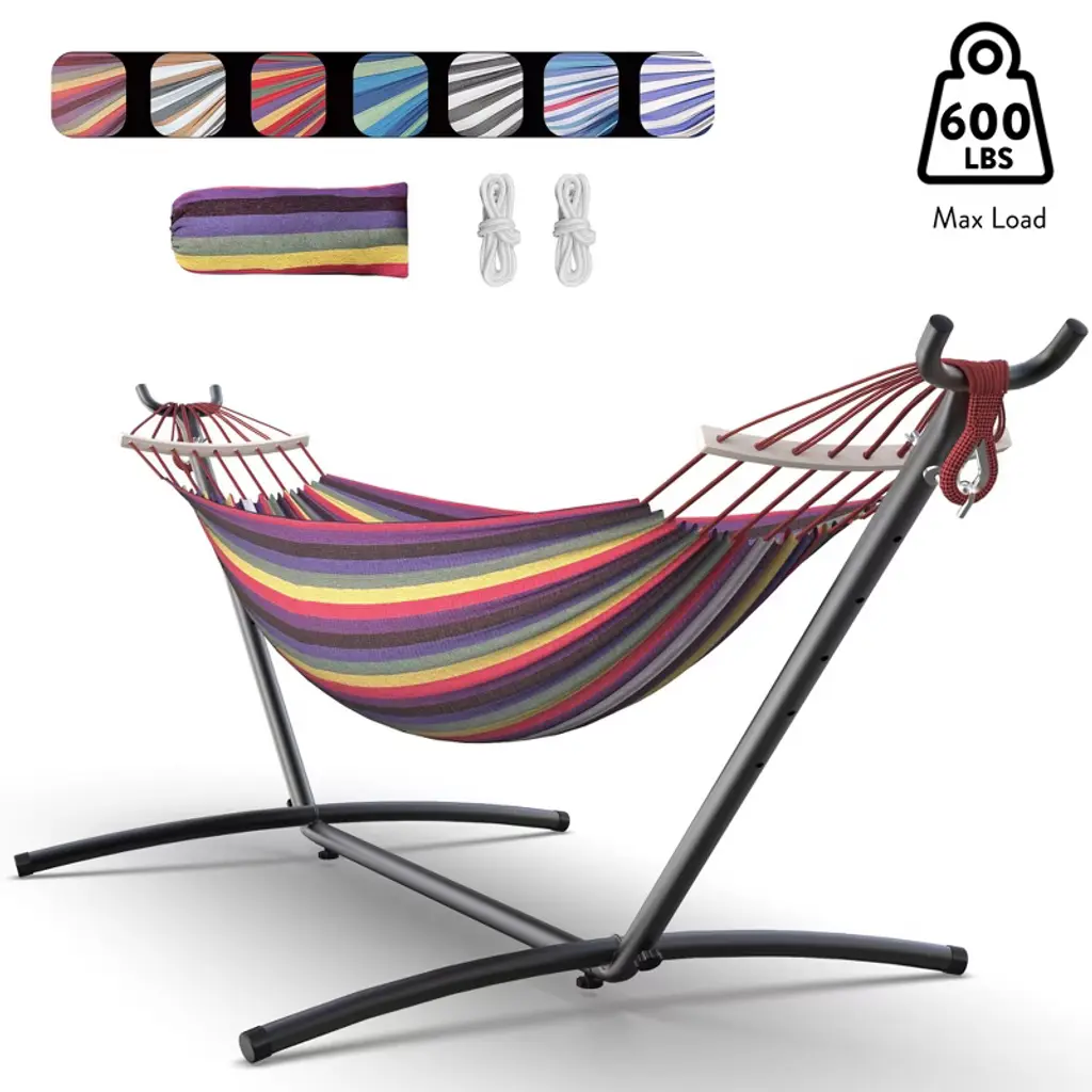 Mastgoal Double Hammock with Stand, a perfect blend of comfort, durability, and convenience. This hammock is designed to enhance your relaxation experience, whether you're at home or on the go. Embrace a leisurely lifestyle with the Mastgoal Double Hammock with Stand. It's suitable for multiple scenarios, whether you want to read a book under the sun, take a nap in the shade, or just enjoy the outdoors with your loved ones.