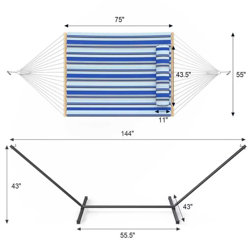 Mastgoal 2-person Cotton Rope Double Hammock With Stand, Removable Polyester Pad, 500lbs Capacity
