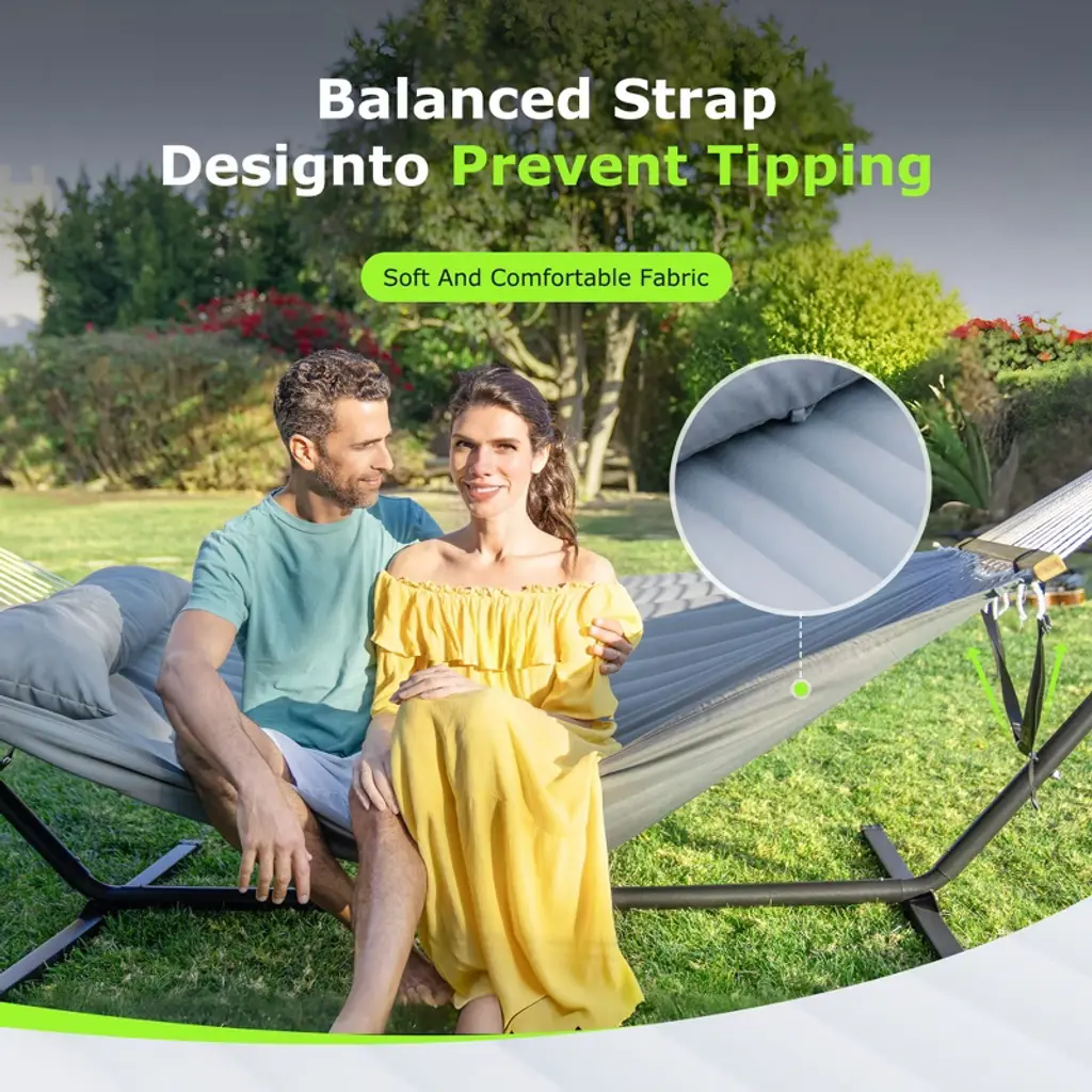 Mastgoal 2-person Eavy Duty Double Hammock With Adjustable Steel Stand, 500lbs Capacity