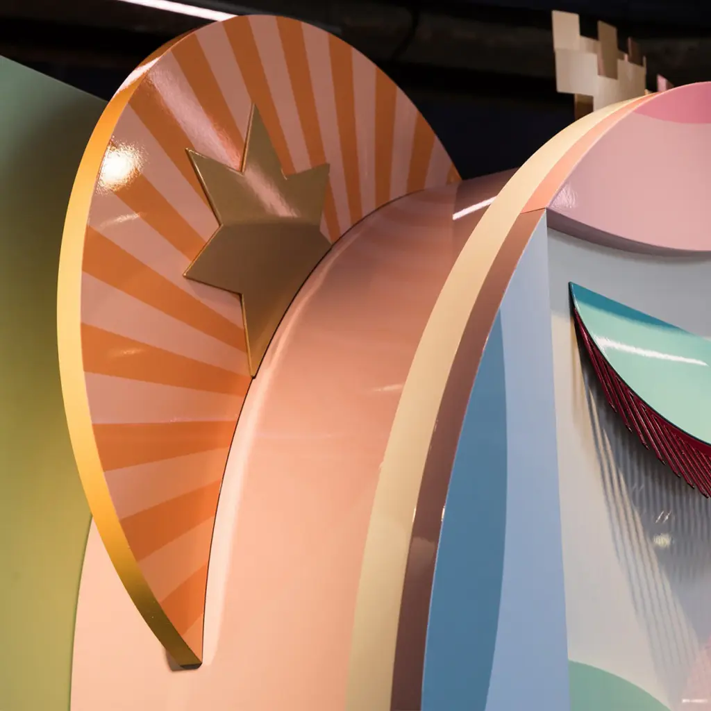 Eccentric, poetic, and glamorous, this closet celebrates a romantic tale on the foundation of the city of Messina, Sicily by the beautiful princess Mata and her beloved knight Grifo. The exaggerated details define the silhouette of this design, allowing for the neat storage of clothes while serving as an eye-catching decorative piece in contemporary, eclectic spaces. Made to order, it is deftly crafted and painted in a glorious combination of vibrant hues.
