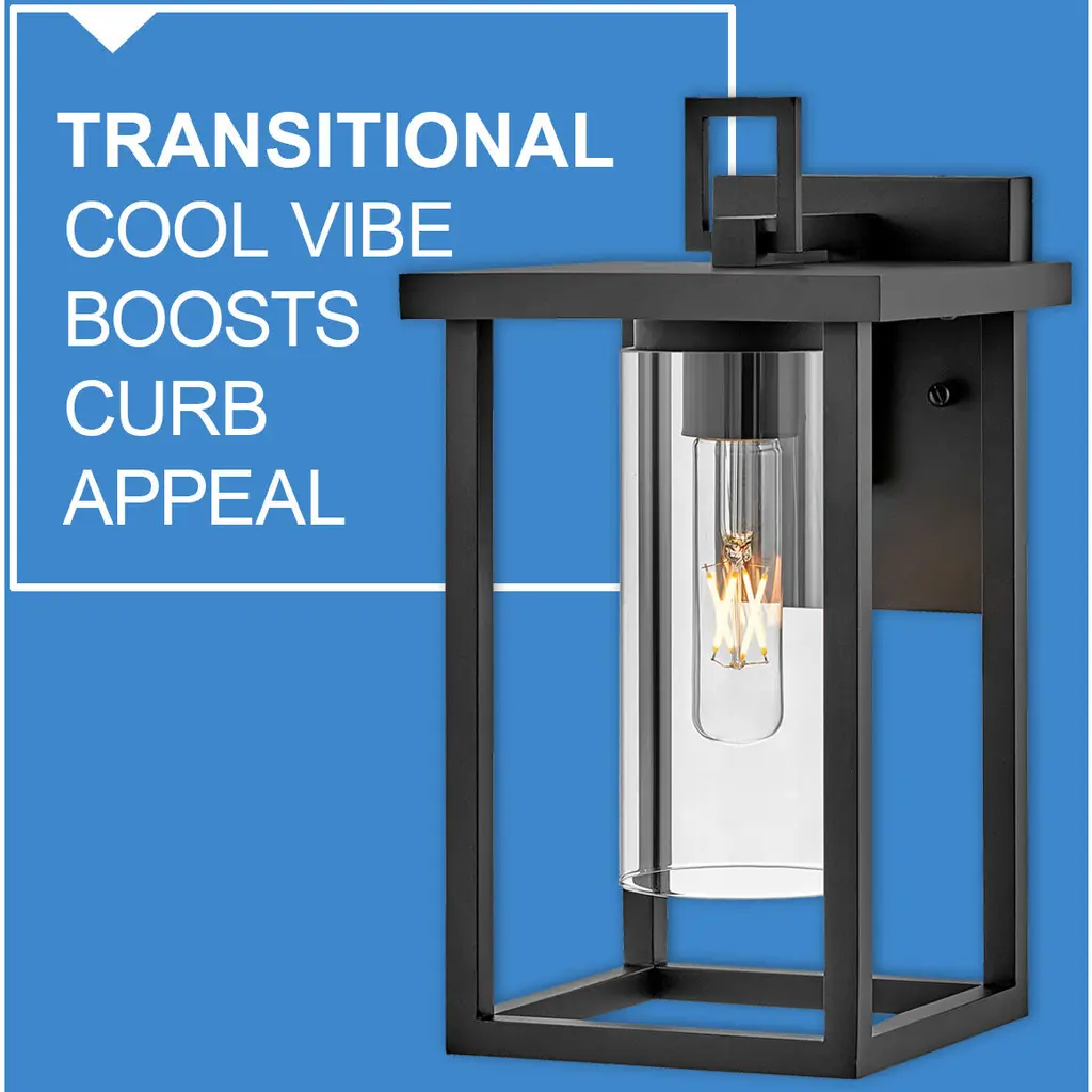 Mateo brings a transitional cool vibe to the block. The clean lines, clear glass, and strong structure come together to create a classic outdoor lantern silhouette that instantly boosts curb appeal. The mix of rectangular angles and cylindrical glass adds dimension that draws the eyes in.