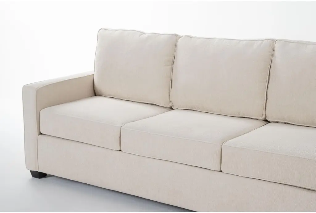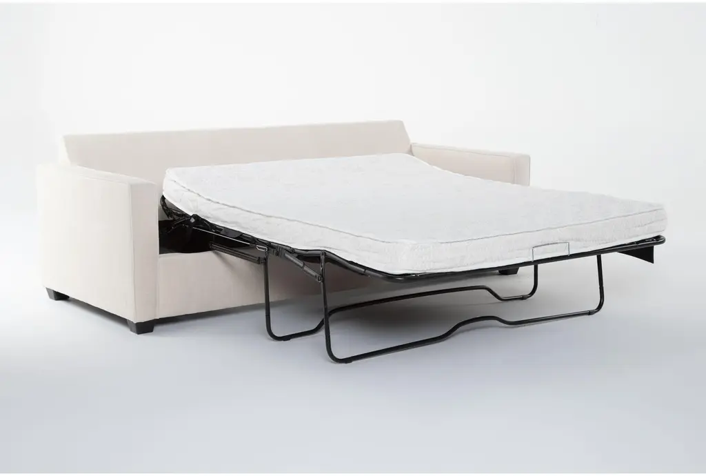 The Mathers Cream Beige Fabric 3 Piece 91" Queen Memory Foam Sleeper Sofa Bed Arm Chair & Ottoman Set is the perfect addition to any modern living room. With its reversible back cushions and soft Marshal cream color, this set offers both style and versatility. The 100% polyester fabric ensures durability and comfort, making it a great choice for relaxed family gatherings.