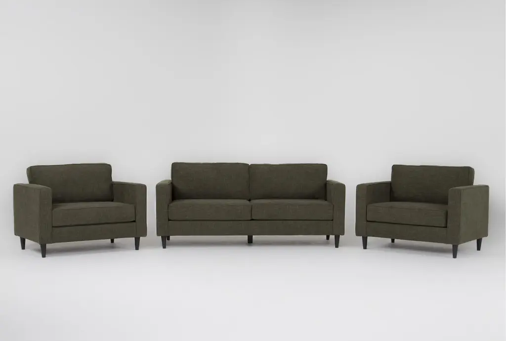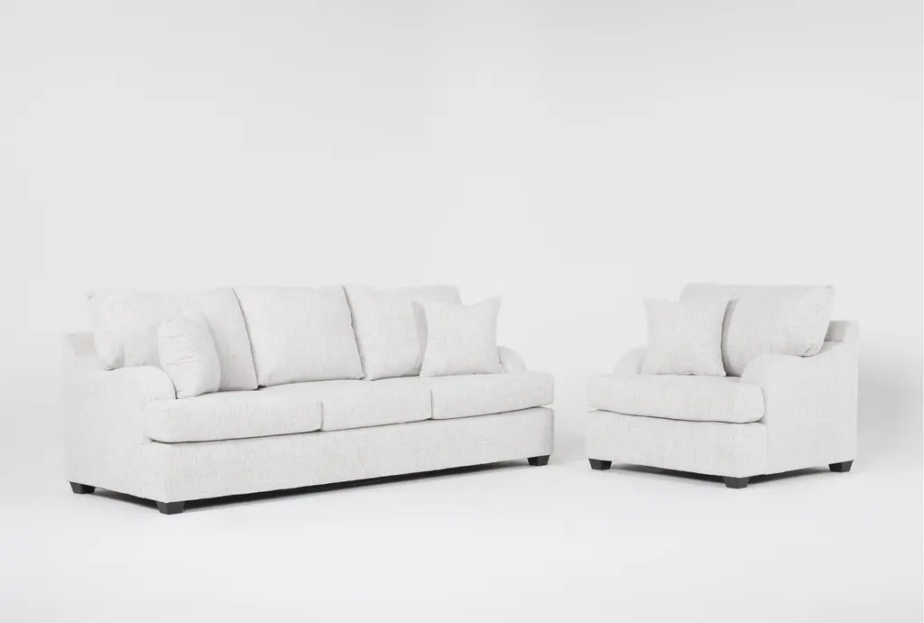 Mathers Oyster Grey Fabric 91" Sofa|lucca Blue Fabric Accent Chair & Ottoman