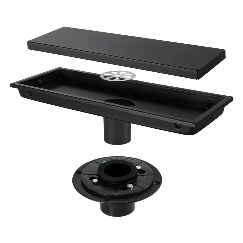 Matte Black 12 Inch Stainless Material Shower Drain With Abs Base - 11.8 X 4.4 - 11.8 X 4.4 - Black