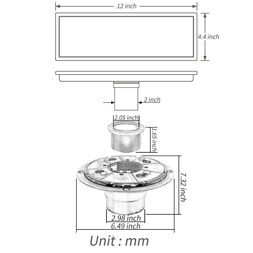 it is fit for 2 inch drain pipe Reliable craftsmanship and material - Each piece of this product was made with solid materials such as brass or stainless We provide a life-time warranty for our faucets.Finish options are Brushed Nickel, Matte Black, Chrome, Polished Gold and Brushed Gold. Grolta provides the finish-matched floor drains, bathtub faucets, kitchen faucets, shower systems which are sold separately; if you want to make your bathroom looks consistent, please feel free to reach us if you can not find more info here. Grolta Group USA - the California company provides a life time limited manufacturer warranty and phone call and email customer service.