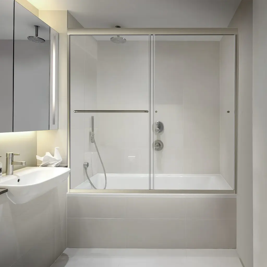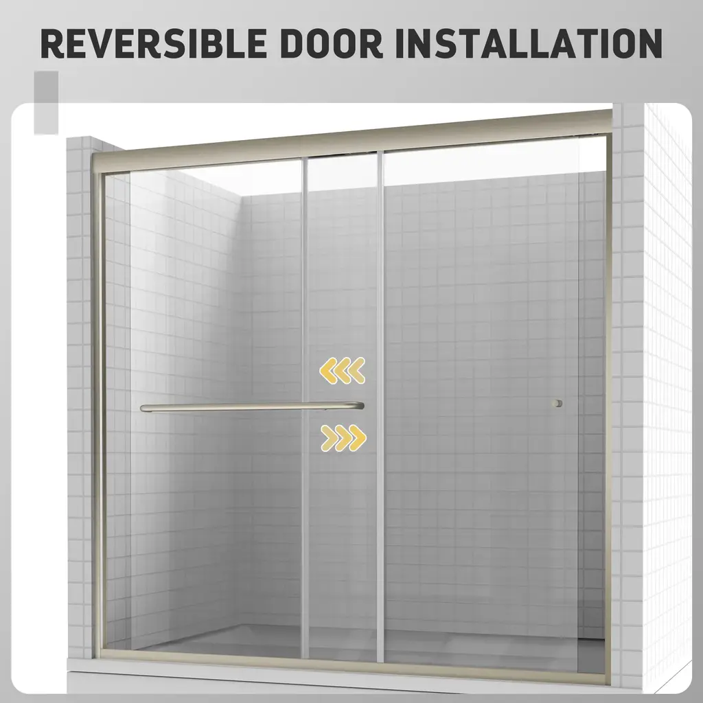 The Frameless shower door brings a simplicity and practicability to your bathroom with its eye-catching design. It will definitely be an durable component of your bathroom with its superior quality tempered glass and durable stainless steel hardware. The door is reversible in accordance with your decoration requirements. Easy installation, water proof and durable materials can help us bring you a convenient and wonderful experience when you are enjoying taking a shower. Features:In summary, this tempered glass semi-frameless double sliding shower door is a high-quality product that combines safety, practicality, and durability.