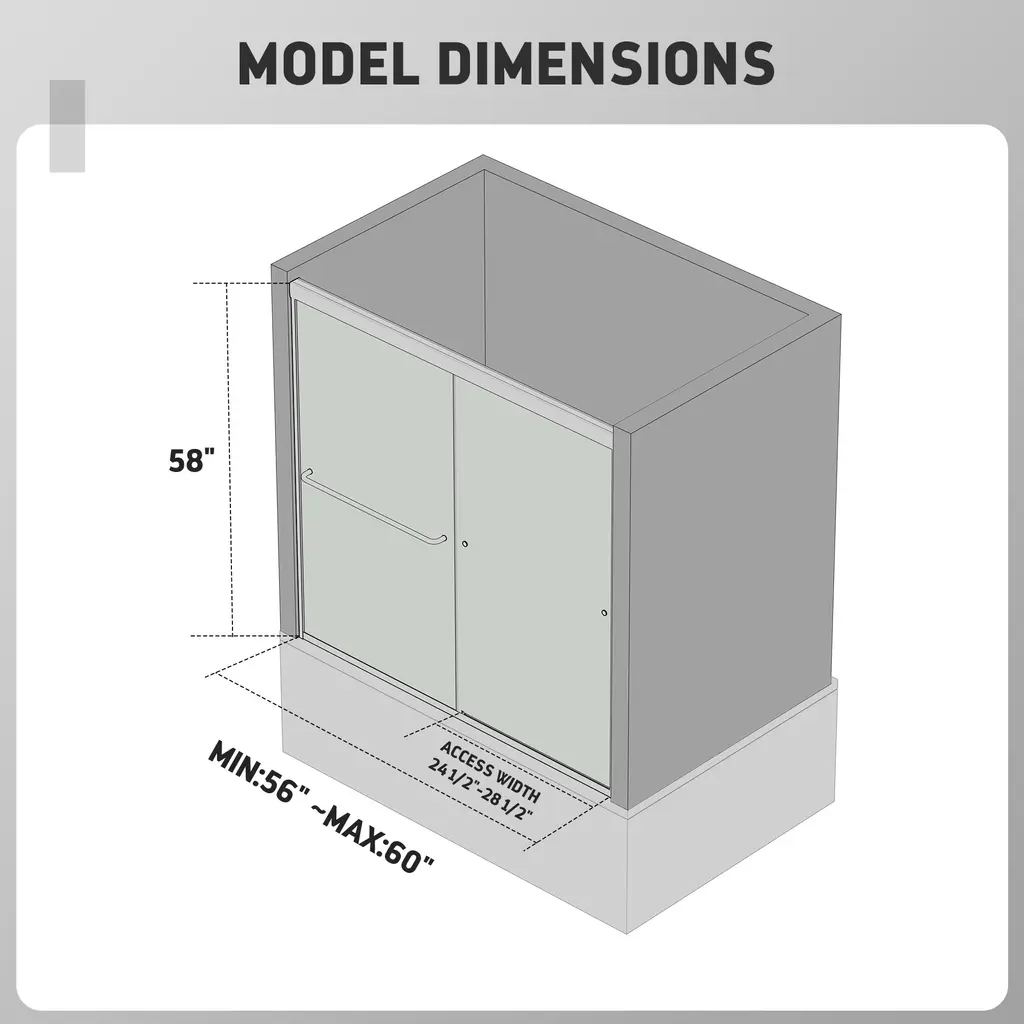 Matte Black Semi-Frameless Double-Sliding Shower Door With Clear Glass - 60 In.wx58 In.h - Silver