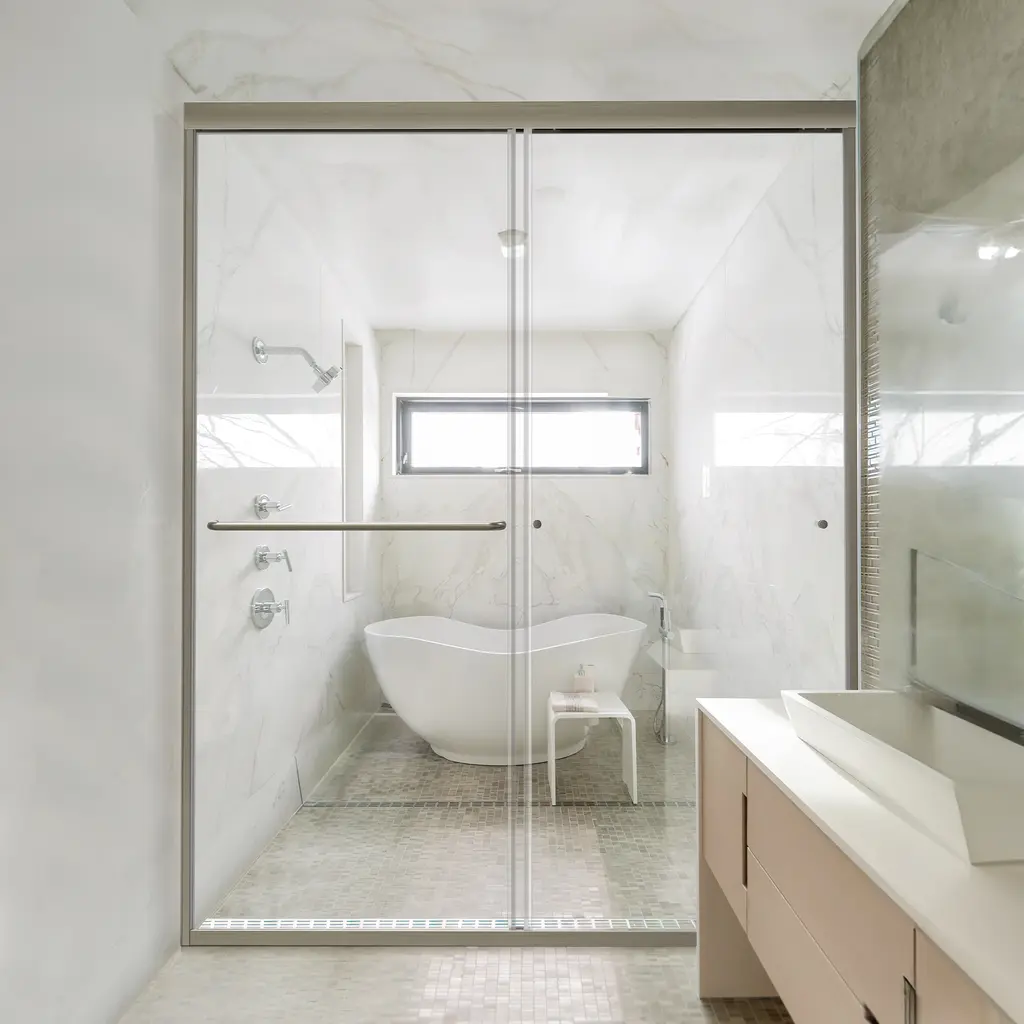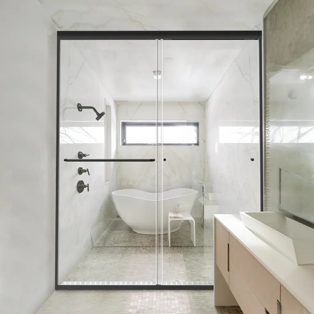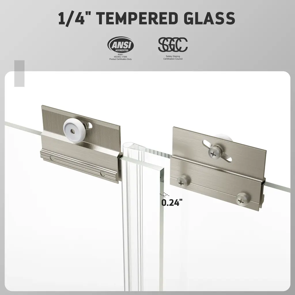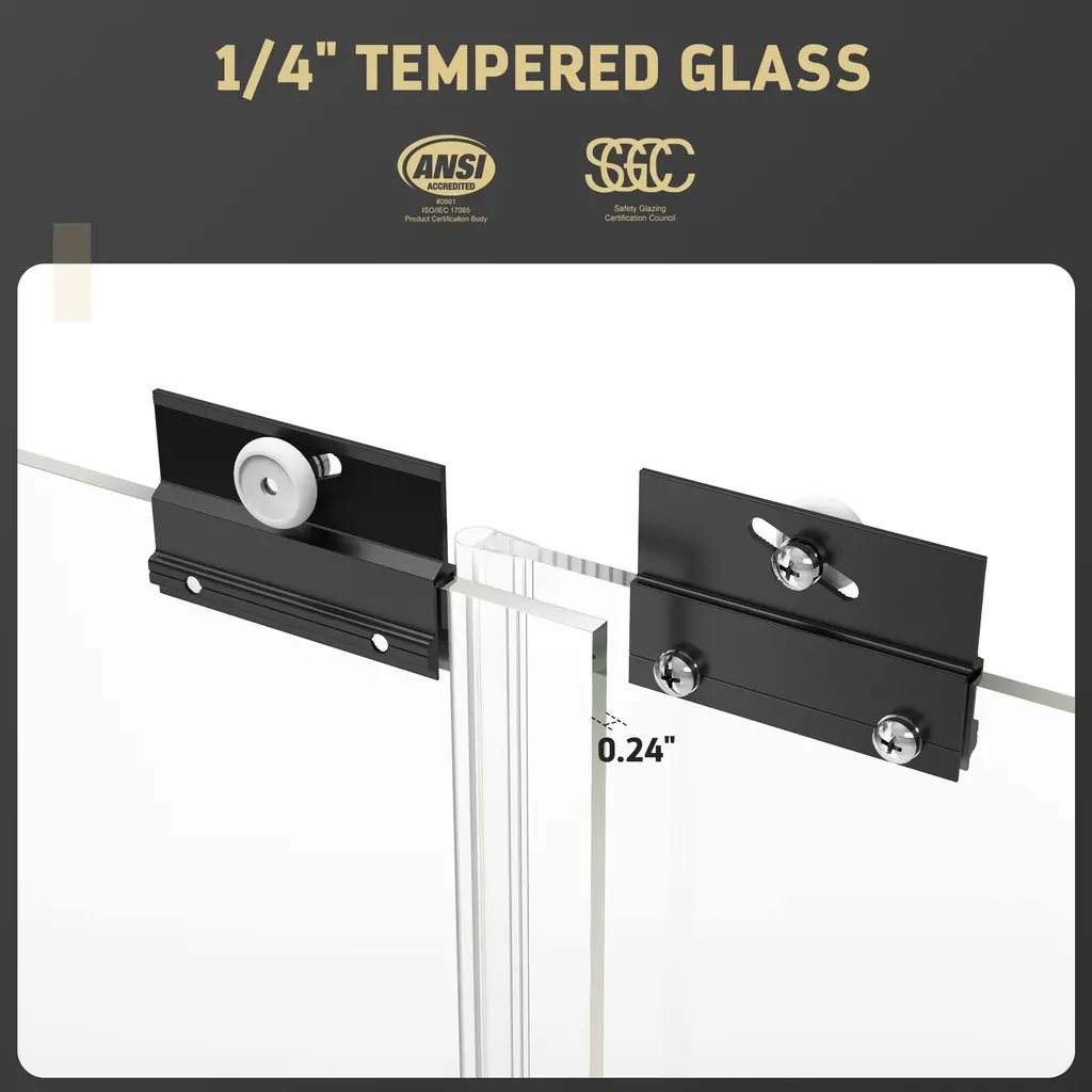 The Frameless shower door brings a simplicity and practicability to your bathroom with its eye-catching design. It will definitely be an durable component of your bathroom with its superior quality tempered glass and durable stainless steel hardware. The door is reversible in accordance with your decoration requirements. Easy installation, water proof and durable materials can help us bring you a convenient and wonderful experience when you are enjoying taking a shower. Features:In summary, this tempered glass semi-frameless double sliding shower door is a high-quality product that combines safety, practicality, and durability.