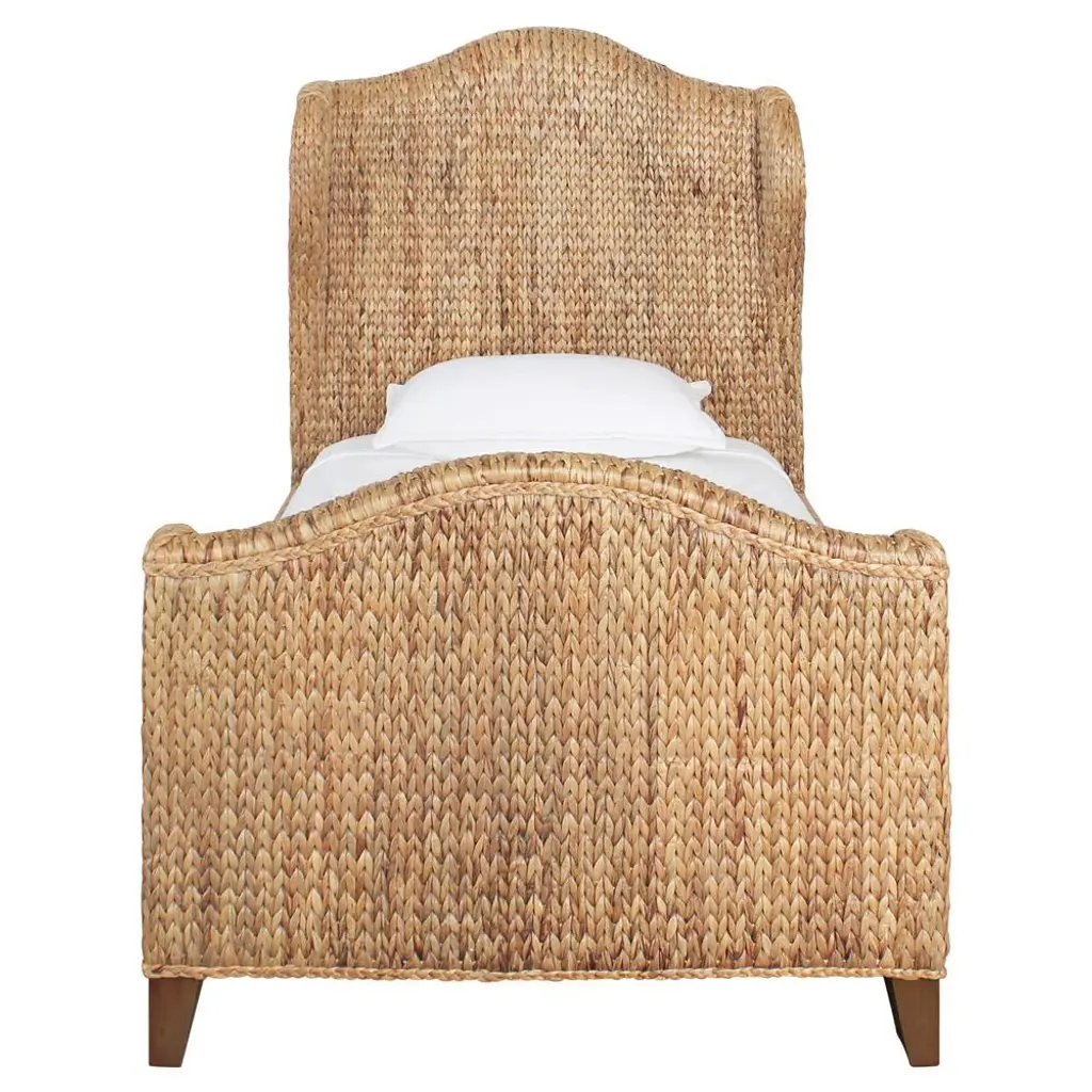New Item, Elevate your bedroom with the Jovi Winged Headboard and Footboard with Side Rails. Crafted from natural water hyacinth, this bed adds a touch of rustic charm to your bedroom. The winged design provides extra flair while the side rails add sturdiness. Available in King, Queen, and Twin. See seperate listings.