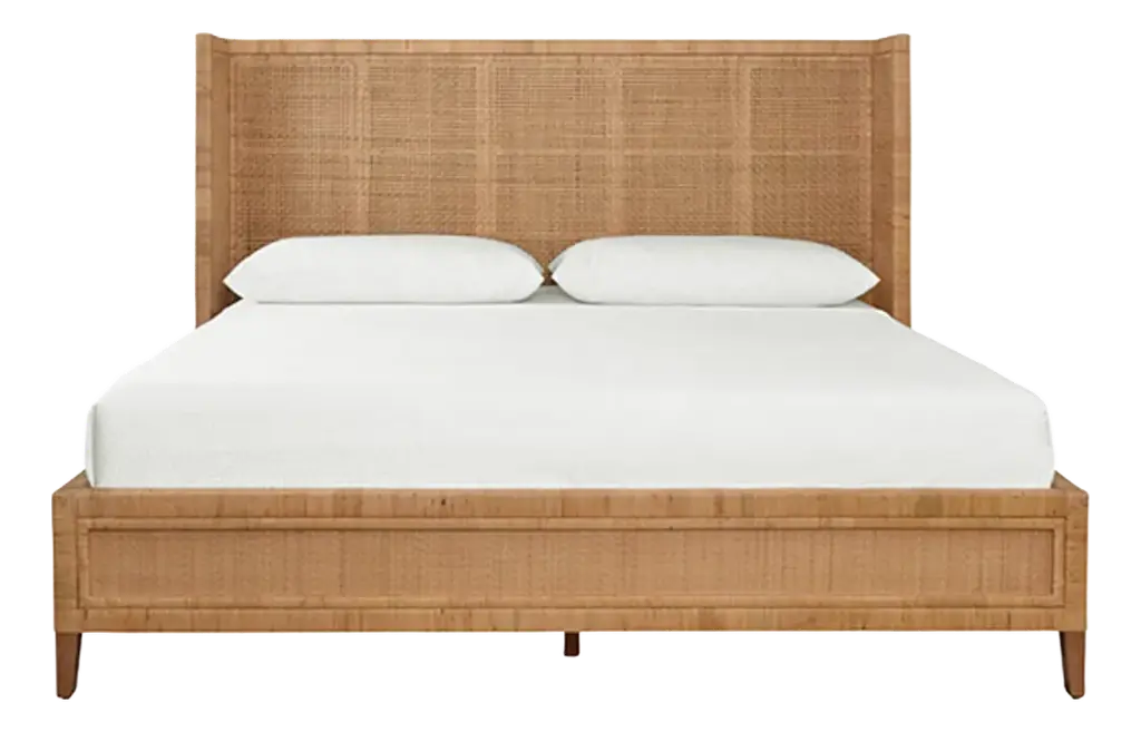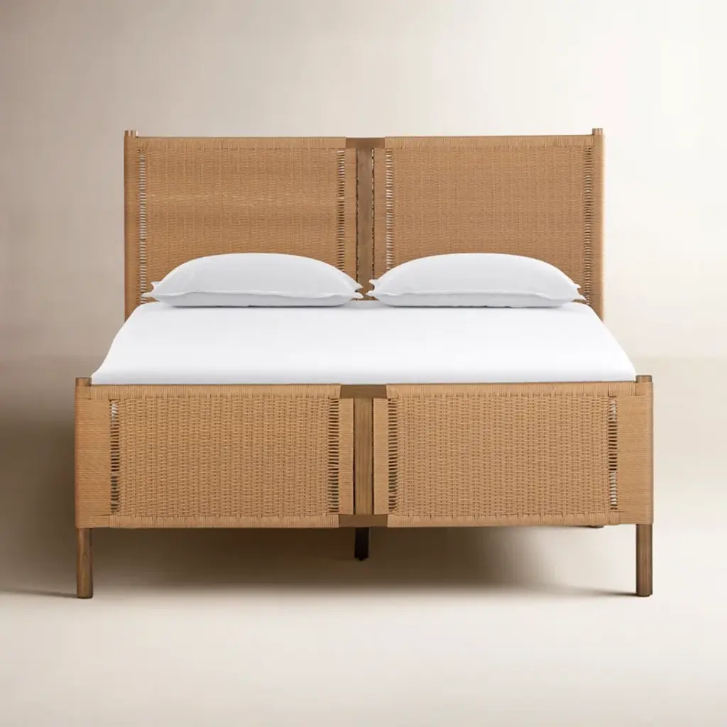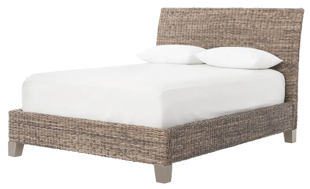 New Item, Get the best of both worlds with our Karina Seagrass Wrapped Headboard, Footboard, and Side Rails! This unique design features a beautiful seagrass wrap around the headboard and footboard, combined with sturdy wood side rails and legs. Available in King, Queen, and Twin sizes. Upgrade your bedroom with a touch of nature! Available in King, Queen and Twin.