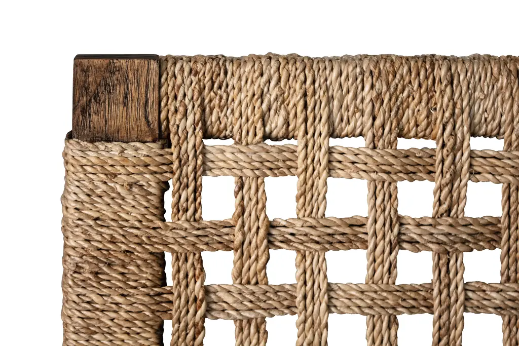New Item, Get the best of both worlds with our Karina Seagrass Wrapped Headboard, Footboard, and Side Rails! This unique design features a beautiful seagrass wrap around the headboard and footboard, combined with sturdy wood side rails and legs. Available in King, Queen, and Twin sizes. Upgrade your bedroom with a touch of nature! Available in King, Queen and Twin.