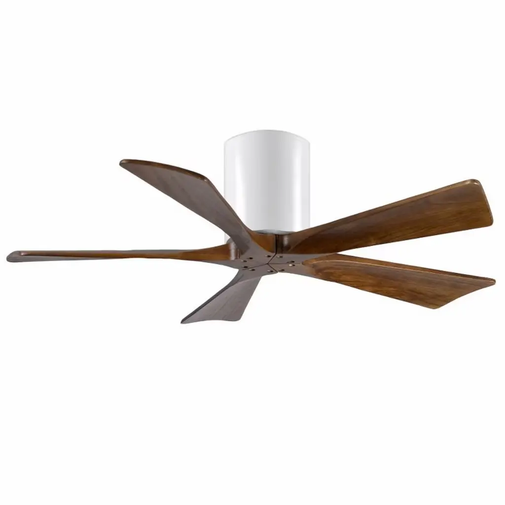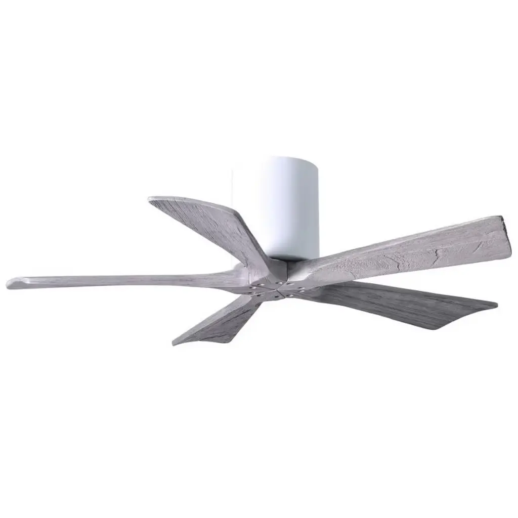 Cutting a figure like no other, the Irene-5H is rustic, yet strikingly modern design that transforms the look of any space it inhabits. Lauded by designers for how the solid wooden blades are neatly joined, this indoor ceiling fan makes your space feel cooler and more comfortable. The globe-shaped body makes the style more personable, and even helps uphold that signature minimal profile. With a timeless design, the Irene-5H brings a warm and natural feel to any modern home. Limited Lifetime Warranty 42" diameter with five solid wood, machine-cut blades. Energy efficient, ultra-quiet, six speed, reversible DC motor with new, reliable technology. Damp location finishes not recommended for salt water/ocean front applications.